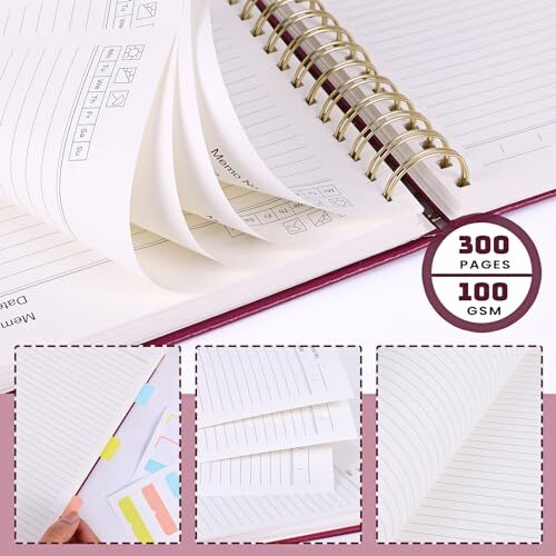 Return Policy Fast Delivery Trusted seller Spiral Notebook Journal 8.5” x 11”, A4 300 Pages Hardcover Leather Lined Journals for Women, College Ruled Notebooks with 100GSM Thick Paper, Spiral Journal for Work School (Burgundy) Product Description [Hardcover Spiral Journal Notebook] With 's latest design of hardcover spiral notebook, you can better help you organize your family, work and other projects, etc.. Our notebook has a total of 300 coded pages and comes with a table of contents. T is enough writing space to help you better categorize and record important matters. After researching the writing habits of notebook users, we have designed each page with the date and weather to make your records more convenient and comprehens [ Leather Cover Journals] Our spiral notebook cover is made of imitation leather, without harming any animals. The leather waterproof cover protects the inner pages from damage, so that your records can last for a long time. Our inner pages are thick enough to minimize ink bleed-through when writing, making the entire record look cleaner and tidier. [Sturdy Metal Coil] Our spiral notebook adopts upgraded tough metal double coils, which can ensure smooth page turning while the cover and paper are fixed and won't fall off. In addition, the coils support 180-degree page flipping flat, maximizing the space available for you to write and record more comfortably. [Other Clever Designs] The front and back cover of our notebook come with a total of 2 pockets. These 2 pockets are with different designs, can meet your storage needs for items of different sizes. In addition, the handy stickers and rulers that come with each notebook can cope with any recording and marking needs. The metal corner protectors on the cover, on the one hand, make your notebook look luxury, on the other hand, also avoid the edge damage of the cover and inner page caused by long tim [Multiple Occasions] This leather spiral notebook is perfect for use in schools, offices, homes, work organizations, travel handwriting and other occasions, applicable to students, office people, teachers, travelers. Suitable for writing diary, study, journal, diary, plan, drawing, sketching, personal daily notebook, travel diary, work notebook or college classroom or meeting notes. Shipping Returns Payment Shipping Shipping is FREE to all addresses other than APO/PO boxes in the lower 48 states. All our stock ships from US-based warehouses. Shipped via USPS or UPS (depending on location and package weight) Unless stated otherwise, all orders will ship within 24-72 hours of your payment being processed. Check our feedback to see the great reviews of FAST shipping we offer. Returns Seller does not accept returns Payment We currently accept payment via eBay managed payments only. Once payment is cleared, we will dispatch your shipment within 1-3 business days. Please refer to the "Shipping" tab for more information regarding shipping speed to your destination.