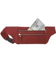 Feature: Material Cowhide leather Size: 14”x 4 ¼” Est Money belt has a slim design for comfort Front side has 2 zipper pockets Top zipper pocket is made for cash bills Bottom zipper pocket works well for smaller items Back side is has a large zipper pocket Belt Strap is made with soft nylon that can adjust to 58" long Leather zipper pulls R 3093