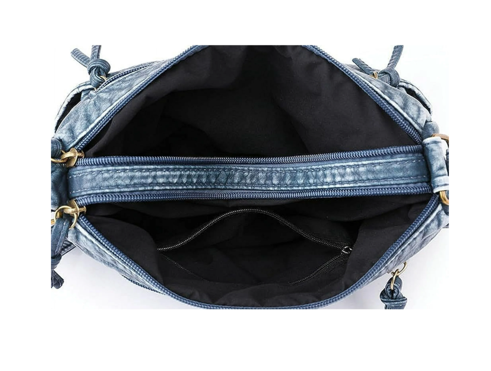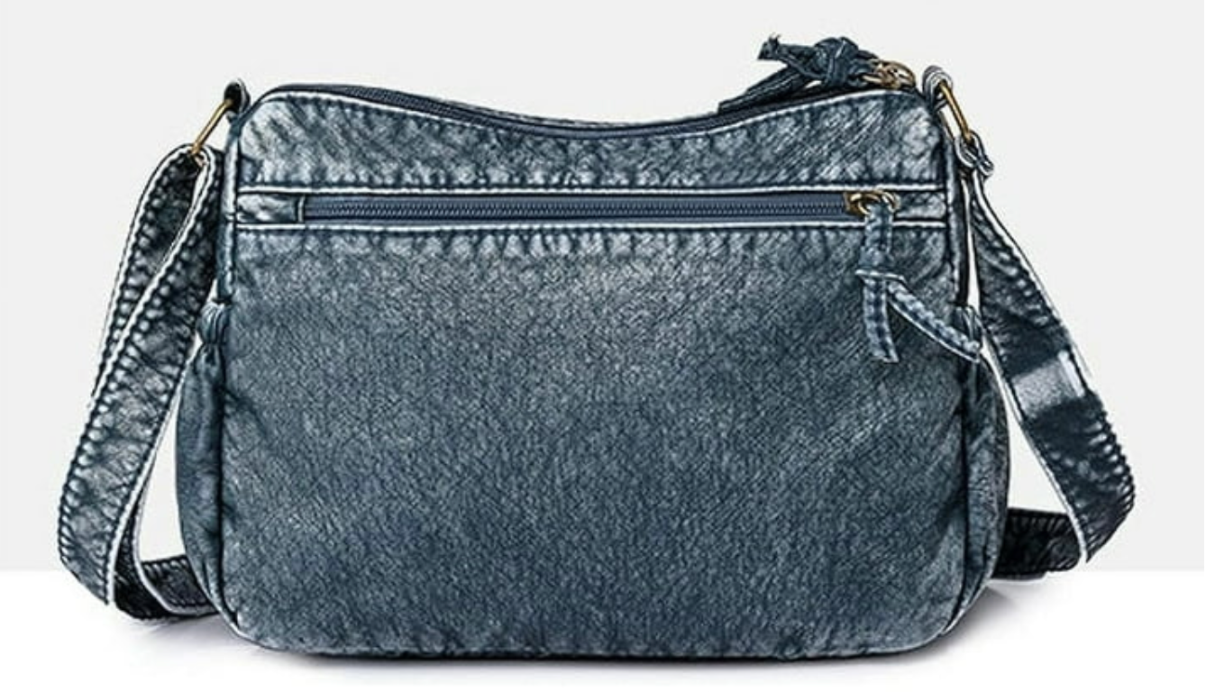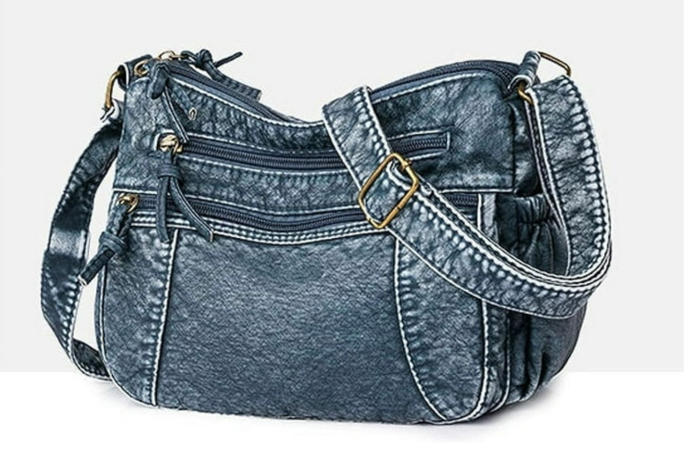 Medium Size Vintage Women's Purse Made with Premium Leather and Real Denim. Has lots of zipper pockets, good for everyday use, goes well with any outfit, any outing.
