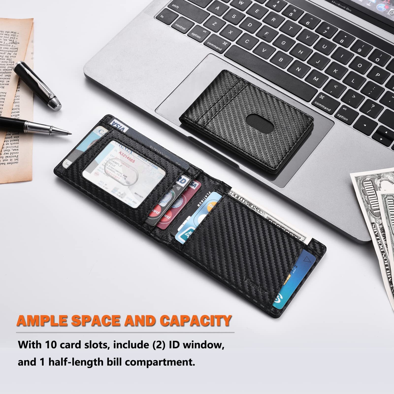 [High-Quality Materials]: This stylish wallet is made of high-quality microfiber leather. The leather has a fine texture, is comfortable to the touch and super durable. It is ideal for carrying ID cards, credit and debit cards, cash, etc. [Long-lasting Durability]: This leather wallet comes with matching high-quality lining, with neat contrast and clean stitching on the inside and outside. The strong stitching ensures long-lasting durability without damage. Note that the new wallet card slots will generally feel stiff and taut, but will become more flexible over time and your wallet will feel softer and more comfortable after multiple uses. [Compact Design]: This men's bifold wallet features a unique compact design, Slim and compact with impressive storage capacity: with 10 card slots, include (2) ID window, and 1 half-length bill compartment. This wallet is only 0.5" thick and fits easily into your clothes or pants pocket. The outside notch allows you to push out the cards easily. [RFID Blocking Function]: This smart wallet is equipped with double-layer RFID blocking technology. The technology has been tested and can effectively prevent electronic thieves from accessing your personal and financial information through the scanner. Note that RFID blocking wallets will not block some ID badges, access cards, and hotel key cards that operate at 125 kHz. [Perfect Gift]: This mens wallet comes with beautiful gift packaging. It's the perfect gift for Birthdays, Father's Day, Valentine's Day, Thanksgiving and Christmas. This high-quality wallet perfectly shows the man’s temperament and taste.