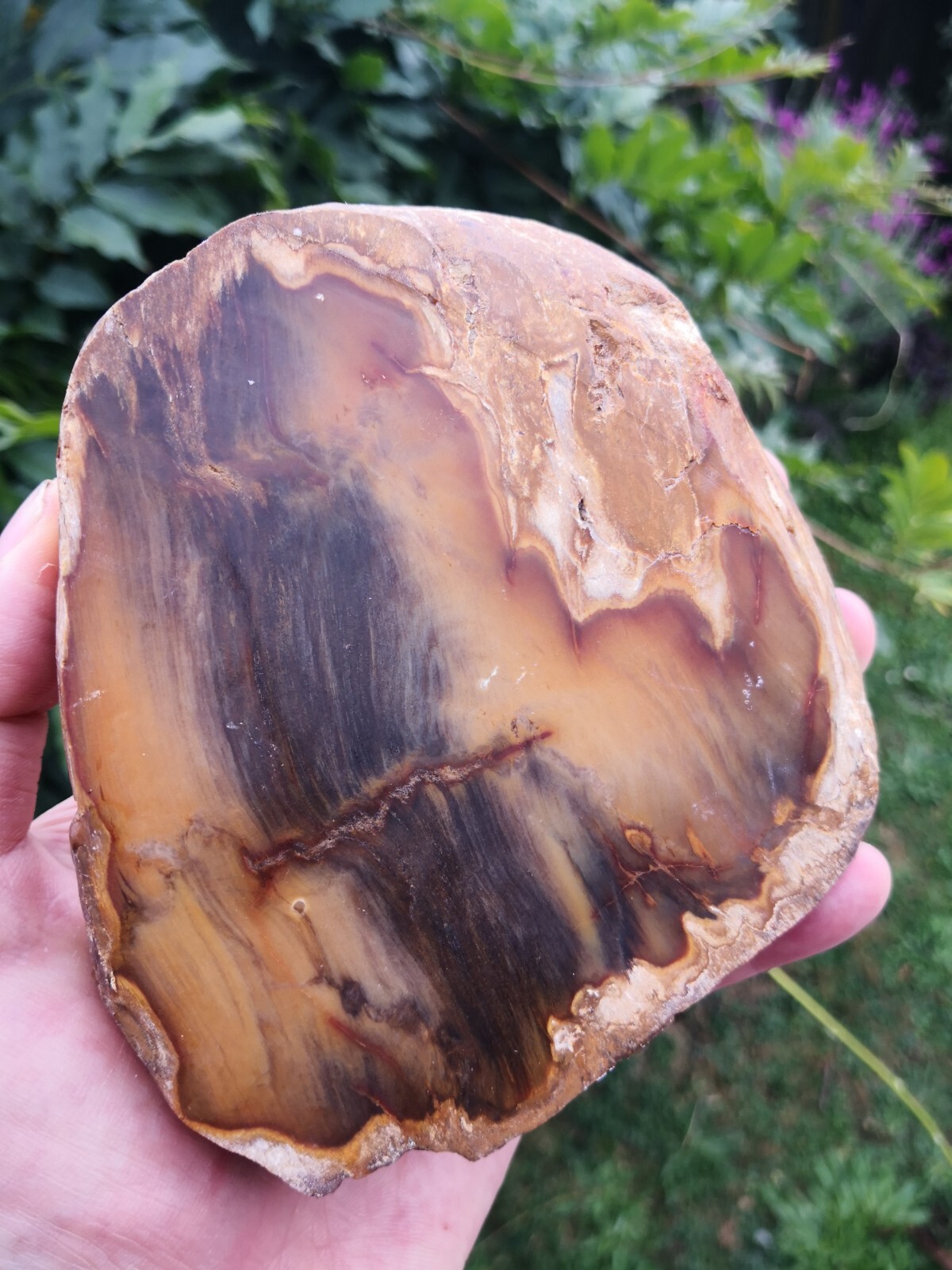 Welcome to our store! We are a sustainable family business. All our stones are ethically sourced and untreated. Our packaging is recycled. To Combine shipping for multiple items please use the "add to cart option" Feel free to send offers. This item is as follows: New Zealand stone Variety: Petrified wood from coromandel Item Size: 117mm length 122mm width 22mm depth. Weight 605 grams. Type of finish on the stone: oiled natural finish. When you receive it please keep it oiled. Detailed description of item: Beautiful Natural Slab of coromandel Petrified Wood. Completely oiled for pictures. Amazing mixture of colours and inclusions. Great for carving or jewellery