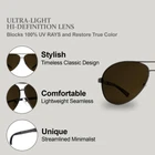 Description Experience timeless elegance with our aviator-style sunglasses. These sunglasses feature a classic, sleek metal frame that exudes sophistication and durability. The teardrop-shaped lenses provide extensive coverage, ensuring optimal protection from the sun's rays. Designed for both comfort and style, these aviators come with adjustable nose pads for a personalized fit, making them perfect for all-day wear. The streamlined design and minimalist aesthetic make these sunglasses a versatile accessory, ideal for any occasion. STYLE Iconic Aviator Sunglasses metal frames for a sleek and sophisticated look, perfect for both men and women.The design is ideal for oval, heart, and round face shapes, and is suitable for medium to large head sizes. POLARIZATION: Delivers maximum protection with UV400 Protection Coating, blocking 100% of UVA & UVB rays. Restores true color, eliminates reflected and scattered light, ensuring clear, distortion-free vision. Meets all eye safety standards. LIFETIME WARRANTY: Since 1996, has covered all workmanship, wear, and accidental damage with hassle-free replacements, backed by US customer support. PRODUCT DIMENSIONS: The sunglasses feature a total frame width of 127mm (5.0 inches), a bridge width of 25mm (1.0 inch), a lens width of 63mm (2.5 inches), a lens height of 51mm (2.0 inches), and temple length of 140mm (5.5 inches). PACKAGE: Sunglasses come in Branded Gift Box and includes a branded microfiber soft carry pouch for added protection and easy clean.