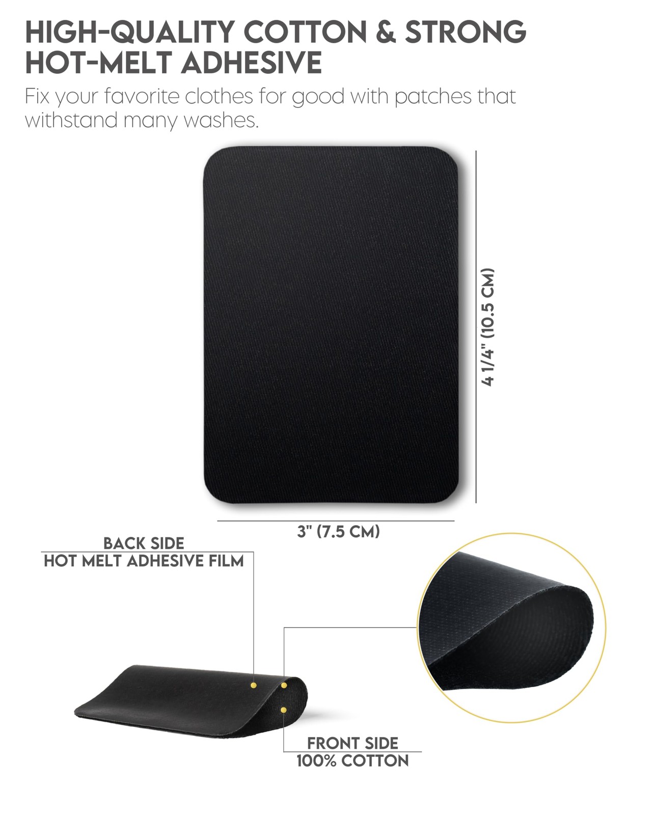 Effortlessly repair and decorate your clothes with our ZEFFFKA Premium Quality Fabric Iron-on Patches. This pack of 12 black patches, measuring 3" x 4-1/4" (7.5 cm x 10.5 cm), offers a versatile solution for various fabric types. The front is made of 100% cotton, while the rear features a strong, durable hot-melt adhesive film, ensuring a secure bond with just an iron. Ideal for both indoor sewing projects and quick repairs, these patches can be applied on the inside or outside of garments, withstanding high-temperature washes and tumble drying. Perfect for fixing tears on pants, jackets, sheets, and more, these patches are an essential addition to your sewing kit. ๐ฃ๐ฎ๐ฐ๐ธ๐ฎ๐ด๐ฒ ๐๐ป๐ฐ๐น๐๐ฑ๐ฒ๐: 12 iron-on fabric patches, size 3" by 4-1/4" (7.5 cm x 10.5 cm). Ideal size will help to conceal the shortcomings of both small and large holes and enough to create your own design. Black color will perfectly match your different clothes. Front side of the patches is 100% cotton, rear side is covered with the strongest hot-melt adhesive film. Patches made in EU using high quality materials. ๐๐ฎ๐๐ ๐๐ผ ๐๐ฝ๐ฝ๐น๐: It will take only a few minutes to repair or decorate your outfit, as only an iron is required. Preheat your iron to the maximum, then place the patch on the desired spot and iron over the patch with pressure for 60 seconds. You donโt have to sew patch on or use further fabric glue, hot-melt adhesive film on each patch is very durable by itself. CAUTION: Do not apply patches using hair straighteners or other heating objects, only use an iron. ๐ข๐๐๐๐ถ๐ฑ๐ฒ & ๐๐ป๐๐ถ๐ฑ๐ฒ ๐ฆ๐๐ถ๐๐ฎ๐ฏ๐ถ๐น๐ถ๐๐: You can place the patches on the outside of a garment. Use scissors or die-cut machine to cut the patches to the size or shape you want and decorate your favorite clothes. You can also apply patches from the inside of a garment, this way the shiny rear side of the patch shows through the hole. After a couple of washes, the shiny glue will disappear and it will look like normal fabric. ๐ ๐ฎ๐ฐ๐ต๐ถ๐ป๐ฒ ๐ช๐ฎ๐๐ต๐ฎ๐ฏ๐น๐ฒ: Applied patches are washable at high temperature; they can also be tumble dried on a high temperature setting. Even if applied patch starts to peel off after some time, simply re-iron the patch again. One patch can be re-ironed at least 3 times, even after washing. To prevent the felting off and curling up, pay special attention to the corners, butt areas and seams when applying the patches. ๐ ๐ผ๐ป๐ฒ๐ ๐ฆ๐ฎ๐๐ฒ๐ฟ: Repair crotch areas, knees, elbows, pockets etc. when it already has tears marks, or use the patches to prevent future problems. Place a patch inside of the garment on a weak spot before the problem transpires, prolong the life of your new clothes. Not only pants and jackets can be fixed, but also sheets, car seats, even socks and many more. Carefully read the instructions of the fabric which you are going to repair, it has to withstand the highest temperature of an iron.