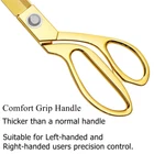 【Strong】:Premium Stainless Steel Rust Resistant Blades,high-density steel that makes harder than normal stainless steel. 【Golden Titanium Coating Blades】:Thicker than a regular blade,They are strongly resistant to rusting and to adhensives. 【All-Purpose】: Easy for cutting fabrics.Ideal for sewing, tailoring,quilting,alterations,hand craft,home and office use. 【Comfort Grip Handle】: Thicker than a normal handle.Suitable for Left-handed and Right-handed users precision control. 【Size】:length 10.5 inch x 2.7 inch wide. 【Strong】:Premium Stainless Steel Rust Resistant Blades,high-density steel that makes harder than normal stainless steel. 【Golden Titanium Coating Blades】:Thicker than a regular blade,They are strongly resistant to rusting and to adhensives. 【All-Purpose】: Easy for cutting fabrics.Ideal for sewing, tailoring,quilting,alterations,hand craft,home and office use. 【Comfort Grip Handle】: Thicker than a normal handle.Suitable for Left-handed and Right-handed users precision control. 【Size】:length 10.5 inch x 2.7 inch wide.