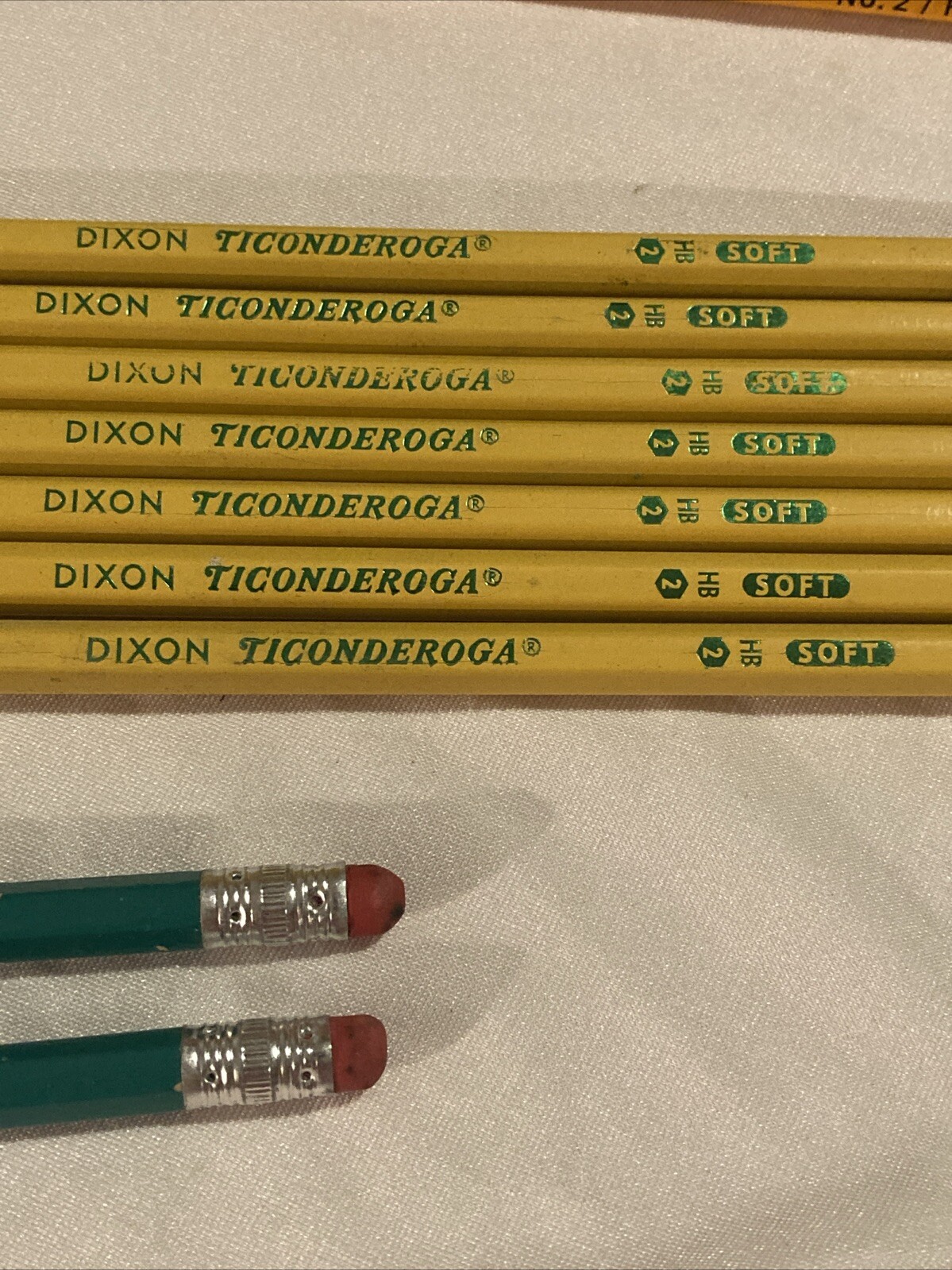 This assortment of 13 preowned #2 pencils from Dixon Ticonderoga is perfect for any office or school setting. Each pencil comes with an eraser and has been gently used, ensuring that they are still in good condition for your writing needs. The pencils are of the standard variety and are made in the United States. Their model is WOOD #2 PENCIL FOR TESTS, making them ideal for any exam situation. Add these high-quality pencils to your collection today.