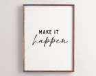Printable Office Decor Make It Happen Wall Art Motivational Office Art Positive Sayings Print Material: Premium luster photo paper Print type: Inkjet printing One side printed + The finish provides the highest possible resolution and color saturation + Lasts up to 200 years in color and 400 years in black-and-white + Printed on high-quality resin-coated photo base paper medium + Posters can be hung with double-sided tape, tacks, or framed + Hand washing with a gentle cry cloth is recommended for extended durability I will hand select the best choice of paper for your chosen design to ensure top quality results for a beautiful, bright and luxurious print. All prints are sealed in cellophane slips for protection during transportation, and are shipped in a protective cardboard envelope.