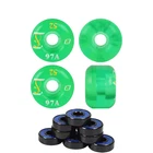 Product Description Printed Skateboard Wheels Soft Gel 97A Clear Green 52mm x 36mm + Abec 7 Bearings Get transparent urethane on a wheel slightly softer than standard. Includes a set of 4 wheels. 97A Duromter, measures 52mm x 36mm. The soft durometer and wide footprint makes these a great option for beginners, or those looking for a smooth ride which requires a little less effort. Also includes a set of Bullseye Abec 7 Bearings. BRAND TGM Skateboards MODEL Gel 97A Print SIZE 52mm x 36mm COLOR Green CONDITION Brand New The feeling of a new set of wheels is second to none. Well, maybe it’s second to saving a bunch of money. Get the best wheels at the best price from TGM Skateboards. We have hundreds of wheels available, no matter what you are looking for. Traditional skate wheels, cruiser wheels, longboard wheels…we’ve got them all at the absolute best prices available! Wheels are measured by Diameter (Width) and Durometer (Hardness). 50mm to 54mm with a hardness of 99A – 101A is the most common size wheel for street and park skaters, while 55mm to 64mm is typical for bowl and old school skaters. The larger the wheel, the longer the roll. The softer the wheel, the smoother the roll. Softer wheels are great for rough terrain and are also quieter (which is why filmers prefer large, soft wheels). Ultimately, it comes down to personal preference and the type of terrain the skateboard will be ridden on. 17 years being eBay's premier skateboard retailer with 350,000 positive feedback! With over 20,000 items in stock, we are experts on all aspects of skateboarding, longboarding, customer services, shipping speed and bang for your buck. Copyright ©2018 TGM Skateboards | All Rights Reserved