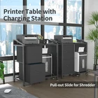 Printer Stand with Storage, Lateral Office Filing Cabinets with Power outlets & USB Charging Port, File Cabinet with Large Printer Stands for Home Office, Shredder Stand Rack with Wheels, Black ❤️【 File Cabinet with Power Outlet and USB Charging Ports 】This file cabinet has a more rational and user-friendly design. The file cabinet is built with 2 power outlets and 2 USB charging ports for your printer, paper shredder, scanner, phone, headset, tablet, and other office electric equipment which provides great convenience to your work when you are using them. This is a real combination of style and function. The modern printer stand gives a charming and elegant look. ❤️【Multipurpose Storage Rack】: Multifunctional and practical design makes it have a good performance and can meet any of your needs to fit in the office, living room, bedroom, kitchen, and whatever else is taking up space in your home or office. If you choose to buy this multi-purpose shelf with a power outlet supply, then you will have a Printer Stand, File Cabinet, Office Storage Rack, Paper Shredder Stand, Microwave Oven Stand, Kitchen Baker’s Rack, and File Rack Organizer at the same time. ❤️【Slide Rail Rack&Large Storage Drawer】This file cabinet has two large storage drawers that provide a lot of space to store your documents or items. The right shelf with slide and handle can store paper shredder or computer host shelf, easy to pull out and use. The office file cabinet with printer stand is equipped with six adjustable feet are provided to prevent shaking on uneven floors. ❤️【Super Sturdy Structure and Stable】The office file cabinet is equipped with a plastic-sprayed steel frame thickened, and the pipe wall is thick, stable, and has strong load-bearing capacity. The printer stand is made from a high-quality MDF board and a rugged premium metal frame, which is corrosion-resistant and can support heavy goods. The multifunction rack can bear up to 200 lbs, and bear to support heavy machines such as printers or microwave ovens. ❤️【Hassle-Free Assembly& Intimate Details】: Don’t be bothered by the nuts and bolts. To make your installation more convenient, the wood file cabinet comes with step-by-step instructions and all marked tool parts. We particularly use thicker foam, firm edges as well as two-tier packaging to protect the filing cabinet with a paper shredder stand. If you have any questions about this home printer stand, please contact us, and we will solve the problem for you in 24 Hours.