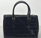 Pristine Coach Large Surry Carryall Black Croc Embossed Satchel Handbag The image shows a black Coach Large Surry Carryall handbag. Helpful information includes: It features crocodile-embossed leather. It has inside pockets and zip compartments. It has a detachable strap for shoulder or crossbody wear. The bag is durable and structured. It holds its shape and keeps items organized. Dimensions are 12 3/4" (L) x 9" (H) x 6" (W). PLEASE READ!!! Pre loved bag may contain minor imperfections such as scuffs, scratches or stains. Please review pictures in detail, ALL SALES ARE FINAL, ABSOLUTELY NO RETURNS OR REFUNDS.