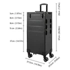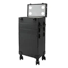 Pro Rolling Makeup Case Modern Black Cosmetic Suitcase w/4 Dimmable LED Lights Description Do you want luxury and durability at work or at home? You can find it here! The rolling makeup case is made of high-quality materials, sturdy and durable. The large capacity of the five-tier design allows you to partition and store different cosmetics, hair tools, and more. Together with the minimalist style, universal wheels, 3-position retractable trolley bar, and comfortable top handle, it makes your daily make-up work more convenient. Key Features Solid and Durable : This product is made of high-quality plastic, aluminum alloy, and PVC, which is corrosion-resistant, wear-resistant, and not easy to fade, ensuring a long service life. Outstanding Load Capacity : The rectangular structure and high-quality materials give the case an excellent weight capacity (up to 66.1 lbs). You can put all your hair and beauty tools in it with confidence. Categorized Storage : This product is designed with five tiers, the large capacity at the bottom is convenient for you to store bottles, hair tools, and other larger items. The functional storage area with dividers is convenient for storing cosmetics such as perfumes, lipsticks, foundations, eyeshadow palettes and more. Carefully Designed : The detachable wheels enable you to replace them conveniently when damaged, which is easy and cost-efficient. The storage compartment with a carry handle allows you to place the entire tier directly on the tabletop, providing added convenience in searching for items. Excellent Lighting : The 4 LED lights provide ample illumination and can also be adjusted between different brightness and light colors(white, yellow, neutral) at the touch of a button, providing soft, anti-glare illumination for a photogenic look at all times. Protect Your Privacy: Locking latches securely protects valuables inside the case and maximizes your privacy. Multiple Power Sources : This product comes with a 3.3ft long USB cable and a 4.92ft long power cable, which reduces the limitation of the use of the site, allowing both indoor and outdoor use. Highly Portable : The easy-to-move universal wheels, three-position telescopic trolley rod, and a top handle make it easy to move the case up and down stairs, in and out of the car, and in the lift. Easy to Assemble: Simple structure and minimalist design mean you don't need other additional installation, you just need to install the universal wheels and start to use them. Simple and Generous: The pure black color, patternless design, and three-dimensional structure make it show a high-end atmosphere. Exquisite Gift: Its classic design and practical function make this product a great gift to your mother, girlfriend, sisters, wife, and loved ones so that they can enjoy more convenient makeup time. Protective Package: To prevent the product from being damaged during transportation, we packed it with a bubble bag and sponge to protect your products to the maximum extent possible. Details 2 Keys : The configuration of two keys prevents the worry of losing or forgetting one key. It also enables you to open the case easily. Wide Opening : With a wide opening(14.76*9.65in), it is easy for you to store and retrieve certain items without messing up other items in the box. Application It is recommended for make-up artists from beginners to professionals such as freelance make-up artists, wedding make-up artists, celebrity make-up artists, and make-up interns. It can also be used for traveling or kept at home for makeup enthusiasts, hair barbers/stylists, nail technicians, estheticians, embroiderers, and crafters. Specifications Material: Plastic, Aluminum Alloy, PVC Color: Black Style: Modern Shape: Rectangular Assembly Required: Yes Mounting Type: Floor Standing Wheel Type: Removable Universal Wheel Carrying Method: Hand-held, Hand-pulled Light Source: 4*LEDs Light Colour: White, Yellow, Neutral Colour Temperature: 3000-6500K Voltage: 12V Power: 20W Load Bearing Capacity: 30kg /66.1lbs Number of Tiers: 5 Plug Type: US Standard USB Cable Length: 1m/3.3ft Power Cable Length: 1.5m/4.92ft Telescopic Rod Extension Height from Case: 20cm/7.87in LED Functional Area Height: 5cm/1.97in Second Box Height: 8cm/3.15in Third Box Height: 8cm/3.15in Fourth Box Height: 9cm/3.54in Bottom Box Height: 37cm/14.57in Overall Product Size: 37.5*24.5*67cm/14.76*9.65*26.38in Gross Weight: 9.57kg/21.1lbs Net Weight: 8kg/17.6lbs Package Size: 78*42*31cm/30.7*16.5*12.2in Package Included 1*Rolling Makeup Case 4*Universal Wheels 2*Keys 1*USB Cable 1*Power Cord Notes 1. Please note that cosmetics are not included. Please use this product within its carrying capacity. 2. The service wear of the case is a normal phenomenon. In the process of daily use, please try to avoid excessive impact and drop to extend the lifespan of the product. 3. Please use soft tools and water to clean. Please keep away from corrosive liquids. Please avoid long-term exposure to the sun. 4. Please clear the wheels in time to maintain smooth movement. 5. It's normal for the tie rod to wobble a little bit as it needs clearance to move back and forth better. If it is too tight, it will harm the tie rod instead. Please make sure you don't mind before purchasing. 6. Please allow the slight color difference caused by the shooting light and 1-3cm error due to manual measurement and make sure you do not mind before ordering. Payment Delivery details Terms of sales About us Contact us Payment We accept ebay payment 。 Fees such as import duties, taxes are not included in the item price or shipping costs. These charges are the buyer's responsibility. Delivery details Shipping: 2-9 working days to: USA Terms of sales We maintain high standards of excellence and strive for hundred percent customer satisfaction. Feedback is very important to us. We hope that you contact us immediately before you give neutral or negative feedback, so that we can address your concerns. It is impossible 