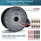 【High Quality Speaker Wire Cable】: The Elecan Pro series speaker wires and cables use 14 Gauge AWG copper-clad aluminum CCA conductors to build excellent signal transmission. And using Anti-Tear Cotton and PVC Protective Film to make the wire Ultra Durable and Sturdy. High-end looking, durable but flexible PVC sheathing wraps around the speaker wires to provide additional protection to the speaker's surface, thus achieving pro sound quality while maintaining the flexibility. 【UL CL3 Rated for Outdoor and In wall Installation】: The Elecan Pro series speaker wires and cables are ideal for outdoor and in wall installation. It can withstand temperature changes, sunlight, soil, water, snow and other outdoor factors. Buried directly underground or in wall or used in conduits. Don't worry about being crushed or damaged.you can be assured of the highest safety standards as the wire has undergone a number of tests to ensure the highest performance and reliability. 【With Multiple Tool Kits & Custom Installation For Perfect Sound Quality】: What you get : 14AWG Speaker Wire 200FT; 1X Professional Screwdriver; 10X Hook&Loop Fastener Ties; 4 Pairs of Banana Tip Plugs; 4 Pairs of Heat-Shrink Tubing. You can freely and easily use the wire to pair with banana plugs, shovel tip, or bent pin connector to connect speakers to A/V receiver or amplifier. Connecting your HiFi, home theater, or speaker system for a memorable sound experience. 【Advantage Of CCA(Copper Clad Aluminum)】: CCA conductors can ensure high fidelity sound quality . In fact, Cca wires can provide the same signal frequency and reliability as copper wires in terms of corrosion resistance, with the advantage of being lighter and more flexible than copper wires.