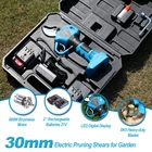 electric pruning shears 【Very Sharp & Strong Power】 -- The electric pruning shears’ blade is forged from SK5 high carbon steel and powered by brushless motor. The brushless motor provides more power to cut 1.2" branches easily. The high-quality SK5 blades are durable and sharp, offering optimal cutting performance for healthy plant regrowth. 【Long Life & Power Display】-- The electric pruners has 2 pcs 21V, 2Ah rechargeable lithium batteries, long battery life, 1.5 hours fast charging, continuously working cut about 8000 times after being fully charged. And come with digital display, tells you just how much power you have left, so you’ll always know where you stand, and you’ll have enough charge to get the job done 【Safety Switch】The electric pruners have a built-in safety switch to prevent children from accidentally starting the pruning tool. When you turn on the power switch, the led indicator will turn green and the electric pruners will beep twice, then you need to pull the trigger twice quickly to start the pruning shears properly. 【Portable, Effort Saving, Arthritis Friendly】 -- This is a power pruner almost anyone can use. Ergonomic design handle, shockproof and anti-slip, light enough so that it’s easier to control. Cordless, compact and lightweight design, make it easy to pruning and enjoy the trimming process effortlessly. 【Pruning Anytime, Anywhere】electric pruning shears solve the problem of small and laborious cutting range of traditional manual pruning shears, which can be used in many kinds of gardens, parks, farms, large ranches, orchards and greenhouses as vine cutters, tree pruning shears, garden shears, etc.