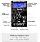 Dual Output Tattoo Power Supply Compatible with Most Tattoo Machines Output: 0-18 Volts, 2.3 Amp Made to Last and More Durable than Last Generation 6 Memory Setting w/ Built-in Foot-switch mode This New 4nd Generation P028-II Dual Tattoo Power Supply is compact and very advanced technologically. It is a full featured digital power supply unit that can sit on any desk or work station with adjustable base. it is lightweight and extremely easy to use! Input for two machines - plug them both in and toggle between the two without having to plug them in and out! 6 Memory preset - This mini computer has the ability to save your settings for 6 different configurations.. Just plug in a new machine, choose your preset and go! Advanced digital micro-processor controlled unit. Choice of voltage increments: .1v, .2v, .5vPrecision regulated voltage output 0-18v2.3 amp Overload protection built in. Liner and shader presets with 2 machine and 4 machine memory modes. Time of day Stop watch feature to monitor time in session. Non volatile memory (holds time and presets even when power is removed) Universal input 110-240vac 50/60hz (comes with US plug) LCD Display with volts, amps, speed, duty cycle, and follow through. Easily bagged with typical machine or bottle baggies also Come with x2 clip cord and the 1x foot pedal. FOOT SWITCH MODES: Your P028-II has 2 foot switch mode options. Momentary mode is the conventional operation mode that most artists are using to where power is supplied to the machine only when the pedal is actuated. Maintained mode functions as a typical maintained switch & quot;Push on, Push off". SW Switch: The SW button performs Switching between Machines #1 and #2. let you have more control on the P028-II. Also the P028-II has build in identical light in fort of the power supply to let you know in which machine are operated. English manual are come with the power supply