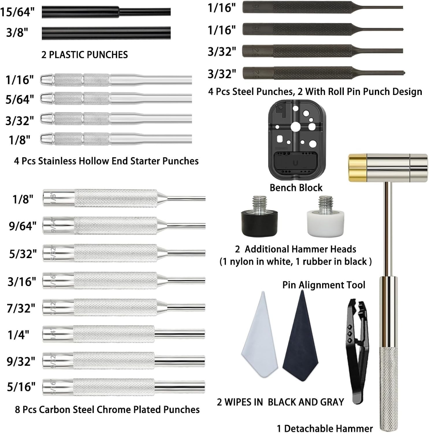 Professional Quality 12-Piece Punch Set with Detachable Hammer for Maintenance ‹ › ‹ › ‹ › ‹ › ‹ › ‹ › ‹ › ‹ › ‹ › Professional Quality 12-Piece Punch Set with Detachable Hammer Elevate your maintenance skills with this exquisite punch set, crafted for both professionals and enthusiasts alike. Perfectly designed for jewelers, watchmakers, carpenters, and anyone in need of precision tools, this set embodies quality, durability, and functionality. Key Features: Stable in Use: Made from high-grade 40# chrome vanadium steel, this punch set undergoes special heat treatment to ensure exceptional performance and longevity. All-IN-1 Set: Comprehensive collection of punches includes sizes 1/8", 9/64", 5/32", 3/16", 7/32", 1/4", 9/32", 5/16", plus 3/8" and 15/64" plastic pin punches, metal tweezers, and a hammer with 4 detachable heads. Bench Block: Featuring a specially finished surface to protect your materials, our bench block includes numerous grooves and channels for diverse maintenance tasks, enhancing your work experience. Detachable Hammer: Ergonomically designed with a non-slip grip, our chrome-plated steel hammer comes with four interchangeable heads for tailored usage: brass, chrome, nylon, and rubber. 3D Assurance: Crafted with precision and thoroughly tested, each punch and bench block has undergone rigorous quality checks and 3D simulations to guarantee outstanding durability and performance. Why Choose Our Punch Set? Investing in this Professional Quality 12-Piece Punch Set means embracing superior craftsmanship and versatility. Whether you are a novice or an experienced tradesperson, this all-inclusive set will meet all your tooling needs. Maintain and repair with confidence knowing that every tool is designed to provide precision and reliability. Perfectly organized in a sleek storage box, portability and accessibility is at your fingertips, making it easy to carry your tools wherever your creativity takes you. Experience the perfect blend of quality and functionality today—transform your approach to maintenance with our expertly designed punch set! Shipping Free & Fast Shipping - We offer free shipping to most of the USA with a normal delivery time of 3-7 days. However, due to the current situation, additional delivery time (up to 3 weeks) may be required for some items. Alternative Carriers - We may use alternative carriers (e.g. USPS, FedEx, UPS, etc.) to ensure your package arrives safely and on time. Due to the use of multiple carriers, we are unable to provide a tracking number automatically. Handling Time - Orders are processed and shipped within 1-2 business days of receiving cleared payment. Shipping Restrictions - Shipping to Alaska, Hawaii, Puerto Rico, Guam, and other US territories may incur shipping charges or delivery restrictions. Please contact us before ordering, or your order can be refunded/cancelled. State Restrictions - There may be restrictions based on your state of purchase. For example, certain items may not be shipped to California due to state regulations. Contact for Tracking Updates - If you require tracking updates or have any concerns about the delivery of your order, please feel free to contact us, and we will be happy to assist you. Return 30-Day Hassle-Free Returns - We want you to be completely satisfied with your purchase. If you are not, you can return the item within 30 days of receiving it for a full refund or exchange. Easy Return Process - To start a return, simply contact us and we will provide you with a prepaid return shipping label and detailed instructions. Restocking Fee - There are no restocking fees for returns. However, the buyer is responsible for return shipping costs if the return is not due to a seller's error. Refund Processing Time - Refunds will be processed within 5 business days of receiving the returned item in its condition. Payment We accept all major credit cards, PayPal, and Apple Pay for your convenience. Your payment information is secure and encrypted to ensure a safe and seamless transaction. Please complete your payment within 3 days of purchase to avoid any delays in shipping. Feedback Your feedback is extremely important to us. We strive to provide the best products and customer service possible. If you are satisfied with your purchase, please take a moment to leave us a positive review. If you have any concerns or issues with your order, please contact us before leaving negative feedback. We are committed to resolving any problems and ensuring your satisfaction. Contact Us If you have any questions or concerns, please feel free to out to our customer support team. You can contact us through the eBay messaging system. We are available Monday to Friday, 9:00 am to 5:00 pm EST, and we will do our best to respond to your inquiry within 24 hours. Buy it now and enjoy a pleasant shopping experience! Item Diameter: 14.8 Item Weight: 2.9 pounds Unit Quantity: 1 Material: Carbon Steel,Chrome Vanadium Steel,Metal,Plastic,40# Chrome Vanadium Steel Type: Punch Set Number of Pieces: 12 Color: Multicolor Unit Type: lb