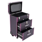 Description A good makeup case is essential for makeup artists. The rolling makeup case is made of high-quality materials, sturdy and durable. The large capacity design allows you to partition and store different cosmetics, hair tools, and more. With the minimalist style, universal wheels, retractable pull rod, and comfortable handles, it makes your make-up work more convenient! Key Features Premium Materials: This product is made of high-quality PVC and aluminum alloy, which is corrosion-resistant, wear-resistant, and not easy to fade, ensuring a long service life. Large Capacity: The two drawers at the bottom allow you to store curling irons, hair dryers and other large items, The large compartment with 45 slots makes it easy to store nail polishes and lipsticks, it is also removable Professional Makeup Train Case Rolling Cosmetic Travel Organizer Suitcase Description A good makeup case is essential for makeup artists. The rolling makeup case is made of high-quality materials, sturdy and durable. The large capacity design allows you to partition and store different cosmetics, hair tools, and more. With the minimalist style, universal wheels, retractable pull rod, and comfortable handles, it makes your make-up work more convenient! Key Features Premium Materials: This product is made of high-quality PVC and aluminum alloy, which is corrosion-resistant, wear-resistant, and not easy to fade, ensuring a long service life. Large Capacity : The two drawers at the bottom allow you to store curling irons, hair dryers and other large items, The large compartment with 45 slots makes it easy to store nail polishes and lipsticks, it is also removable for easy cleaning. The clear bag makes it easy to store make-up brushes, foundations, eyeshadow palettes and other small items(all not included) for your convenience. Thanks to the hook and loop fastener design, you can easily detach the clear makeup bag to use as a separate small bag, which is very portable. Outstanding Load Capacity: The rectangular structure and high-quality materials give the case an excellent weight capacity (up to 110.23 lbs around). You can put all your hair and beauty tools in it with confidence. Protect Your Privacy: Locking latches securely protects valuables inside the case and maximizes your privacy. Flexible Movement: The easy-to-move silent universal wheels(with two brakes), telescopic pull rod, and case body handle make it easy to move the case up and down stairs, in and out of the car, and in the lift. Simple and Generous: The pleasing purple and silver color, three-dimensional structure, and smooth lines give the product a modern feel. Such a beautiful makeup case can nicely decorate your dressing room and make a good impression when you are out at work. Exquisite Gift : The exquisite design and large capacity make this product a great gift to your mother, girlfriend, sisters, wife, and loved ones engaged in the makeup industry. Easy Maintenance : A simple construction and smooth surface make this product easy to clean, you just need a towel and water to easily remove dust and residue. Details Wide Opening : With a wide opening (beveled edge length: 14.1in), it is easy for you to store and retrieve certain items without messing up other items in the drawer. 2 Keys : The configuration of two keys prevents the worry of losing or forgetting one key. It also enables you to open the case easily. Drawer Handle: It allows you to pull out drawers smoothly. Wrapped Corners: They can better protect the product from wear and collision, thus extending its service life. Application It is recommended for make-up artists from beginners to professionals such as freelance make-up artists, wedding make-up artists, celebrity make-up artists, and make-up interns. It can also be used for traveling or kept at home for makeup enthusiasts, hair barbers/stylists, nail technicians, estheticians, embroiderers, and crafters. Specifications Material: PVC, Aluminium Alloy, HDF, Rubber, Metal Color: Purple, Silver Style: Modern Shape: Rectangular Assembly Required: No Mounting Type: Floor Standing Wheel Type: Universal Wheel(2 with Brakes) Carrying Method: Hand-held, Hand-pulled Load Bearing Capacity: About 50kg/110.23lbs Applicable Nail Polish Bottle Height: 12cm/4.7in Length of Open Bevelled Edges: 36cm/14.1in Drawer Height: 17cm/6.7in, 17cm/6.7in, 9cm/3.5in Telescopic Rod Extension Height from Case: 45cm/17.7in Product Size: 36*23*57cm/14.1*9*22.4in Package Size: 64*42*33cm/25.2*16.54*12.99in Gross Weight: 8.3kg/18.3lbs Net Weight: 7kg/15.43lbs Package Included 1*Rolling Makeup Case 2*Keys Notes Please note that cosmetics are not included. Please use this product within its carrying capacity. Please be sure to lift the case by the top carry handle when going up the stairs. The service wear of the case is a normal phenomenon. In the process of daily use, please try to avoid excessive impact and drop to extend the lifespan of the product. Please clear the wheels in time to maintain smooth movement. Please use soft tools and water to clean. Please keep away from corrosive liquids. Please avoid long-term exposure to the sun. To avoid the case from tipping, please ensure the front wheels are facing forward and locked into place when stationed and in use. It's normal for the tie rod to wobble a little bit as it needs clearance to move back and forth better. If it is too tight, it will harm the tie rod instead. Please make sure you don't mind before purchasing. Please allow the slight color difference caused by the shooting light and 1-3cm error due to manual measurement and make sure you do not mind before ordering. Payment Delivery details Terms of sales About us Contact us Payment We accept ebay payment 。 Fees such as import duties, taxes are not included in the item price or shipping costs. These charges are the buyer's responsibility. Delivery details Shipping: 2-9 working days to: USA Terms of sales We maintain high standards of excellence and 