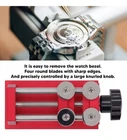Feature: 1. The Bezel Remover: This watch bezel remover is mainly used for disassemble the watch bezel and open the watch case for easier maintenance. 2. Quick for Removal: Equipped with 4pcs round blade, the bezel opener also has a knurled knob for more accurate control, leaving no damage. 3. Premium Materials: Consisting of premium aluminium alloy body and stainless steel screws, the watch bezel removal tool is very durable. 4. Suitable Watches: Suits perfectly for sports watches, and bezel remover is applicable to 60mm large case watches as well, very useful. 5. Convenient Carry: Comes with a compact size and a light weight, the 4 round blades bezel opener is very convenient to carry for working. Specification: Item Type: Watch Bezel Remover Material: Aluminum alloy, stainless steel. Package List: 1 x Watch Bezel Remover