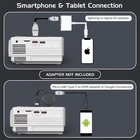 【Upgraded Two-way Bluetooth 5.2 & HIFI Speaker】Built-in powerful speakers, this portable bluetooth projector provides HIFI sound effect while watching movie in a Max 200 inches screen. The updated Two-way Bluetooth function is not only supported to connect with your bluetooth speaker wirelessly, but also you can use this mini projector as a bluetooth speaker to listen music from your phone. Enlarge your happiness with our Bluetooth projector, just enjoy it! 【50% Brighter Images than Similar Projectors 】2025 Upgraded mini projector equipped with 8000:1 contrast ratio, supported 1080p resolution, brings you a 50% brighter images than similar projectors in market. It provides you with a premium home cinema experience with the bigger screen and clearer image. 【50% More Clear Images than Similar Projectors 】2025 Upgraded Chips make this movie projector more clear than other similar projectors. Our technical department researched and upgraded the chip to improve the clarity of the picture, so you can enjoy the movie everywhere and anytime. 【Low Noise & Long Lamp Life】The portable projector is lower in noise and more durable than previous models thanks to advanced fan cooling technology. Powerful cooling system cools the heat of lamp efficiently, extending the bulb life to 50,000 hours, which means you can use it more than 15 years. 【Multiple Input, Compatible with Most Devices】This home projector is fit for playing videos, TV series, photos sharing, football matches etc. It can be easily connected with laptops, smartphones, tablets, USB drives, X-Box to enjoy big games. You can enjoy movies and happyniess everywhere anytime. ★★★Please kindly note projectors with mirrored are incompatible with Netflix and Hulu due to copyright issues, you can use TV Stick to play Netflix.★★★ 【Smartphone Connection Instruction】 This mini phone projector can be compatible with phones and tablets, if you want to connect the phone or tablet, please prepare a HDMI adapter cable. For ios device, you need to use the official Lightning to HDMI adapter to connect your phone with projector. (HDMI adapter is not included.) For Android device, if your phone supports MHL, then you can use the micro usb/type-c to HDMI cable to connect your phone with projector. (HDMI cable is not included.) If your phone does not support MHL, you should prepare a Chrome-cast to connect your phone with projector.