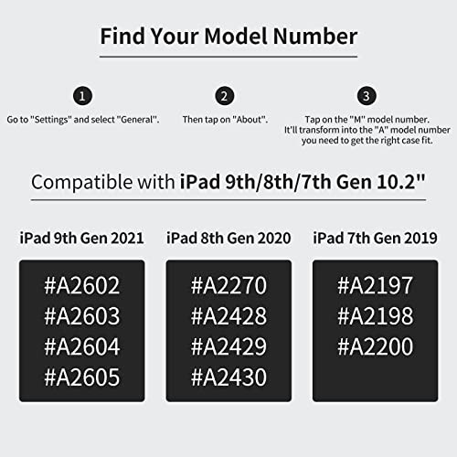 Return Policy Fast Delivery Trusted seller Case for iPad 9th Generation 10.2 Inch 2021 iPad 8th 7th Generation 2020/2019 with Pencil Holder Vegan Leather Auto Sleep/Wake Smart Shockproof Protective Cover Product Description 【Compatibility】 - Designed for 10.2-Inch iPad 9th/8th/7th Generation (2021/2020/2019) [ Fit iPad Models: A2602 / A2603 / A2604 / A2605 / A2270 / A2428 / A2429 / A2430 / A2197 / A2200 / A2198 ]. ⚠️Note: NOT compatible with any other devices. Please check the back bottom of your iPad to verify the model number “AXXX” before purchase 【Full Protection】 - Premium synthetic leather exterior & Polyurethane interior, waterproof and easy to clean. The flexible TPU soft back cover firmly hold on your ipad, install & remove easily without effort 【Built-in Apple Pencil Holder】 - This case holds your Apple pencil tightly, protects your apple pencil from losing. Press the opening behind the pencil it just pops out. [NOTE DON'T INCLUDE Apple pencil] 【MULTI-Angle Viewing &Typing】 - Anti-slip interior material and deep grooves make the iPad stand securely at different angles. No slips! Convenient stand position for watching movie and typing 【Functional Magnet Clasp&Auto Sleep/Wake】 - Exterior powful Magnetic clasp which adds to the closure better reduces battery drain and the iPad protected in best when not in use Shipping Returns Payment Shipping Shipping is FREE to all addresses other than APO/PO boxes in the lower 48 states. All our stock ships from US-based warehouses. Shipped via USPS or UPS (depending on location and package weight) Unless stated otherwise, all orders will ship within 24-72 hours of your payment being processed. Check our feedback to see the great reviews of FAST shipping we offer. Returns Seller does not accept returns Payment We currently accept payment via eBay managed payments only. Once payment is cleared, we will dispatch your shipment within 1-3 business days. Please refer to the "Shipping" tab for more information regarding shipping speed to your destination.