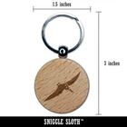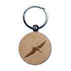 Pteranodon Dinosaur Engraved Wood Round Keychain Tag Charm