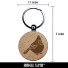 Puffy Cardinal Bird Engraved Wood Round Keychain Tag Charm