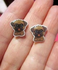 DETAILS This listing is for an adorable pair of handmade Pug dog stud earrings. I have added a resin finish to both front and back making them a very sturdy pair of earrings. They can be customized by adding a crystal, bow, etc per request. Please contact me with your ideas. They are made of resin, acrylic and steel posts which are hypoallergenic. They measure approx. 12mm high by 12mm inch wide. If you have any further questions, do not hesitate to ask. FEEDBACK POLICY DUE TO A LARGE NUMBER OF BUYERS THAT NEVER RETURN FEEDBACK...I WILL ONLY GIVE IT AFTER THE BUYER DOES. WHEN THE BUYER RECEIVES THEIR ITEM AND LEAVES ME POSITIVE FEEDBACK, I PROMISE TO RETURN THE FEEDBACK TO THEM. SOMETIMES IT TAKES ME A FEW DAYS BUT I WILL GET IT TO YOU!! IF THE BUYER IS NOT HAPPY WITH SOMETHING I ASK THEM TO PLEASE CONTACT ME BEFORE LEAVING FEEDBACK AND GIVE ME THE FAIR CHANCE TO MAKE THINGS RIGHT!! I HOPE THAT MY BUYERS WILL UNDERSTAND AND I THANK YOU!! QUESTIONS Ask any question that you may have. If you are not happy with this item when you receive it.... please contact us instead of leaving a negative feedback. We are always willing to work anything out. Our customers come first and we want them to be happy. We always promise excellent customer service. A happy customer comes back!! We stand 100% behind our products and 100% guarantee all of them!! PAYMENT DETAILS USA and OUTSIDE USA: We accept PAYPAL payments. We do combine shipping on multiple items IF all items are paid within one payment. PLEASE WAIT FOR COMBINED SHIPPING INVOICE!! If you cannot pay with Paypal immediate, please let us know right away. This will keep us from bothering you with tons of invoices because we will know when to expect your payment!! Items MUST be paid for within 4 days. If not, We will relist the item and file a Non-Paying Bidder complaint. We truly hope that all transactions can be smooth and pleasant!! PLEASE understand that shipping is more than just stamps or postage. We do combine shipping on multiple items IF all items are paid within one payment. PLEASE WAIT FOR COMBINED SHIPPING INVOICE!! I try and ship items out within 24-48 hours after payment is received. I am very careful to package items extremely well which requires alot of high quality packing materials. Please also understand that no matter how fast I ship...the postal service is out of our control. Thank you! FOR RETURNS If you feel that you are not happy with an item, please CONTACT ME before leaving feedback. If the item is broken...I require return and will refund your payment in full when the item gets back to me. If you just dont want the item and choose a REFUND please understand that I cannot issue it until I have the item back in my home and it is in the EXACT shape as when it left. You will need to return the item at your own expense and refunds do not include shipping unless the item is broken or not as described. This is the only way that I can recover some of my costs that I would otherwise lose. THANK YOU!!