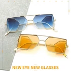 Product information: Applicable scenarios: sun protection, travel, outdoor sports, fashion wear Color: C1 gold frame double Gray piece, C2 gold frame double dried flakes, C3 silver frame gray powder piece, C4 gold frame double blue piece, C5 gold frame orange piece Applicable people: female, male Lens Material: PC Style: avant-garde Packing list: Sunglasses*1 Product Image: