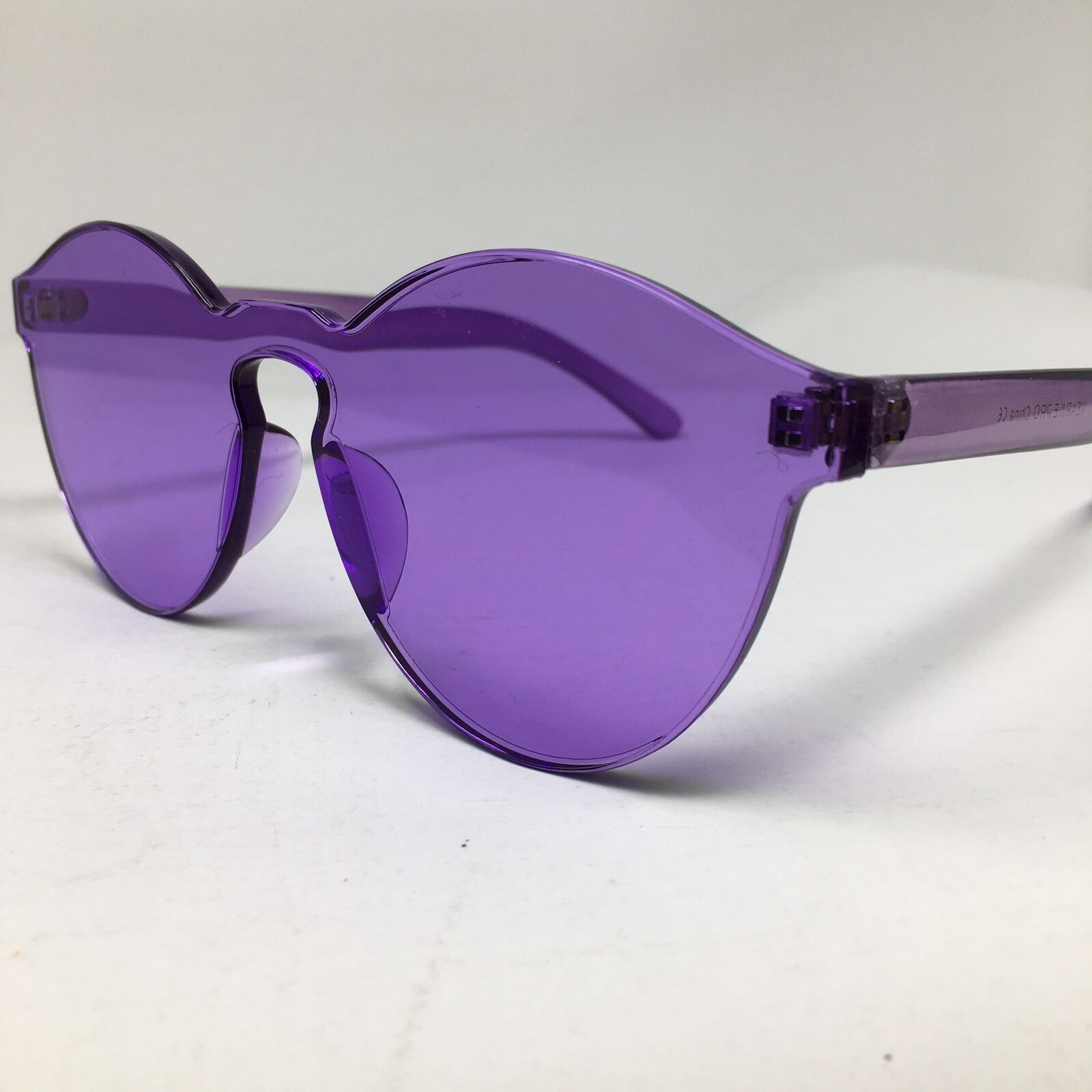 Preowned Wear Me Pro sunglasses - Style 1049. Please review pictures for exact color & condition. About this item Preowned sunglasses in excellent condition Transparent acetate frame and lenses in purple. Stainless steel hinges Long, lightweight wear Oversized look on face Comes with official Wear Me Pro Eyeglass case Please review my feedback rating and purchase with confidence! Thanks for looking
