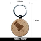 Push Pin Thumbtack Engraved Wood Round Keychain Tag Charm