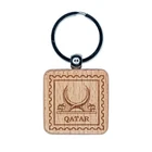 Qatar Travel Katara Towers Hotel Engraved Wood Square Keychain Tag Charm