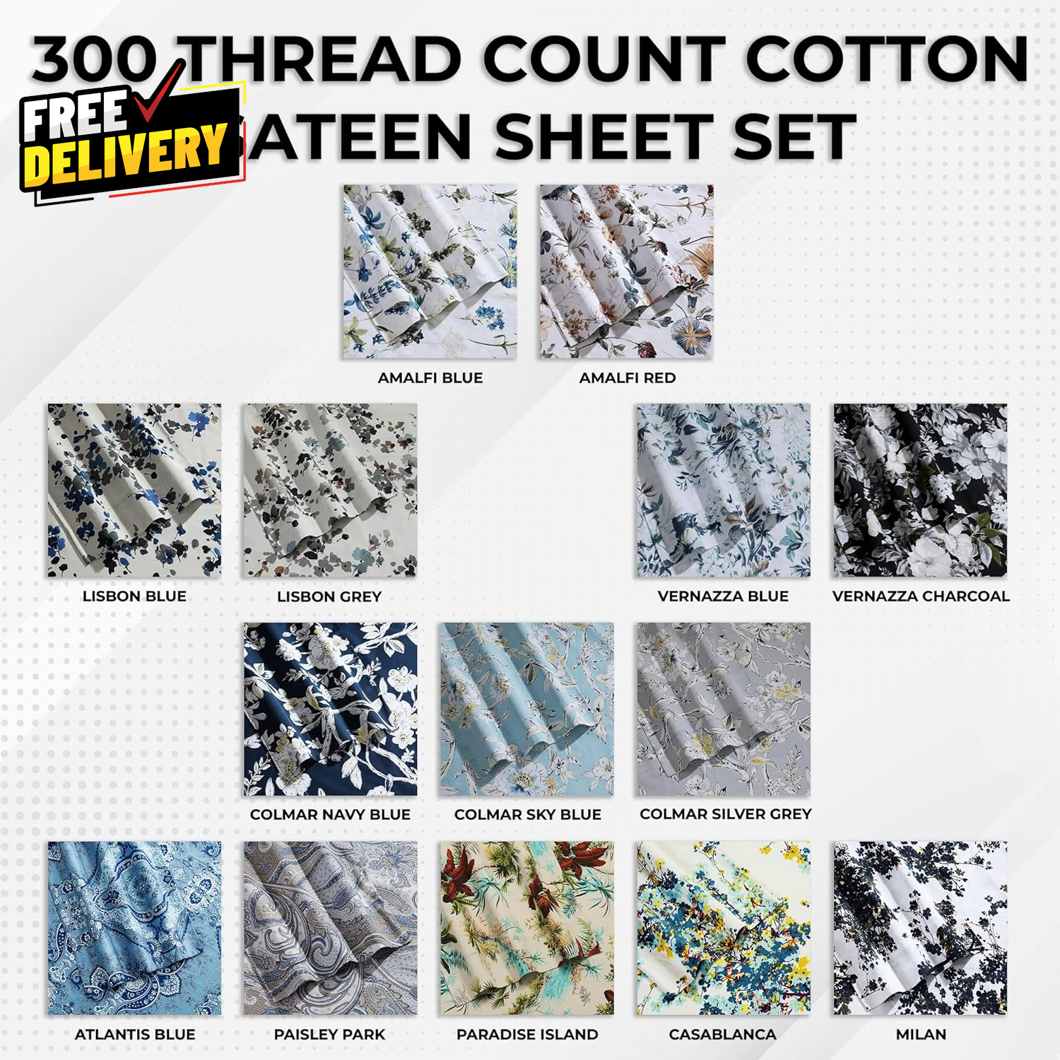Store New Arrivals Add to Favorite View Feedback Contact Queen Bed Sheet Set 300 Thread Count Soft Cotton Sateen Floral Print with Ext... Description Luxurious 4-Piece Bed Sheet Set: Experience the softness and luxury of bed sheets. This set includes one flat sheet, one fitted sheet, and two standard pillowcases to elevate your sleeping experience. 100% Lustrous Cotton Sateen: Made from 300-thread count cotton sateen, these sheets offer a silky-smooth feel with a luminous finish. The floral print design adds a touch of elegance to any bedroom décor, making these sheets perfect for year-round use. Extra Deep Pockets for a Perfect Fit: The fully elasticized fitted sheet is designed to accommodate mattresses up to 22" deep, ensuring a secure and snug fit. Say goodbye to slipping sheets and enjoy a perfectly made bed every night. Durable and Easy Care: Constructed from high-quality cotton, these sheets are both durable and comfortable. They are machine washable, fade-resistant, and designed to maintain their softness and vibrant color wash after wash. Available in Various Sizes and Colors: Choose from a range of sizes including California King, King, Queen, Full, Twin, and Twin XL. With a variety of colors and patterns, you can easily find the perfect match for your bedroom décor. Item model number TLCAFP4PEDSSQU Style Contemporary Weave Type Sateen Pattern Floral Country of Origin Pakistan Theme Floral Number of Pieces 4 Unit Count 4.0 Count Pillowcase Quantity 2 Product Dimensions 12 x 10 x 4 inches Material Cotton Item Display Dimensions 14 x 9 x 4 inches Seasons All Is Discontinued By Manufacturer No Item dimensions L x W x H 12 x 10 x 4 inches Item Weight 4.6 pounds Special Feature Deep Pocket Color Multicolor Thread Count 300 Global Trade Identification Number 00852661466325 Included Components Fitted Sheet Product Care Instructions Machine Wash, Tumble Dry Low, Iron Low ABOUT US Prior to making any purchase from our store, we’d like to introduce ourselves. My name is Shahzad Yaqub , and I am the proud owner of Epic Emporium Deals , located in the great state of Illinois, USA. I have been an active and trusted eBay seller since Jan 14, 2025 . At Epic Emporium Deals , we are committed to offering competitive prices and top-quality products . Our extensive collection features a wide variety of items, including media such as books, movies, music, and games , as well as electronics, toys, sporting apparel, clothing, tools , and general home and garden essentials —and much more! If you have any questions or require assistance, please don’t hesitate to reach out. Your satisfaction is our priority, and we look forward to providing you with an exceptional shopping experience. SHIPPING We are always working hard to ensure your package arrives as soon as possible. Please understand that some factors like weather, high postal traffic, and the performance of shipping companies are outside of our control. We offer free shipping to the lower 48 states and ship within 2 business days of payment, usually sooner. We do not accept P.O. Boxes. Please provide a physical address. For shipping outside of the continental USA, we only use eBay's Global Shipping Program. The item is shipped to IL and then sent to the rest of the world. International customers are responsible for all duties and taxes. Continue to 'check out' to calculate costs for shipping the item to your country. Messages regarding eBay's Global Shipping Program MUST be directed at eBay EXCLUSIVELY. RETURNS We do not accept returns under normal circumstances. However, we will gladly consider a return if the item is received broken or if the wrong size is sent to you. In all other cases, returns will not be accepted. CUSTOMER SATISFACTION We try our very best to make sure every customer is completely satisfied. If there's a problem, message us! We're happy to help.