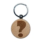 Question Mark Bold Engraved Wood Round Keychain Tag Charm