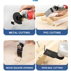 Multi Tool Blades Renovator Saw Blade Oscillating Cutting Dics Wood Tools for Power Reciprocating Hand Tools Multi cutter blade Specifications: 1. Various types of buckles: applicable to various brands of universal card slot buckles, easy to use. 2. Clear tooth pattern: products made with care have high cutting efficiency and long service life. 3. Fast cutting speed: various specifications, used for cutting soft metal, plastic pipes, plates, etc. 4. Before use: first confirm whether the saw blade is damaged. If it is damaged, it is forbidden to use it. During assembly: the matching error between the motor shaft and the central hole of the saw blade must be less than 0.1MM. Pay attention to keep the direction of the arrow marked on the saw blade consistent with the rotation direction of the tool used. During cutting: please do not apply side pressure and curve cutting. The feed should be stable to avoid the impact contact of the blade with the workpiece, so as to avoid danger. During dry cutting: Do not cut continuously for a long time to avoid affecting the service life and cutting effect of the saw blade. When cutting wet blades, add water to cool them to prevent electric leakage. Package Included: 1 * Cutting straight saw blade