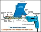 Quikpoint 3000 Universal Drill-Mounted Electric Mortar Pointing Gun/Caulking Gun with Clamping Accessories - Ideal for Tuck Pointing, Stonework, Grouting, Crack Repair with Thin Brick and Glass Block Free & Fast Shipping - Authorized Dealer Ensures consistent mortar bead with vibrator fed auger drive for tuck pointing, brick work, stone work, thin brick, grouting, crack repair, and glass block. Features an indestructible polyurethane body and nozzle holder. Facilitates quick cleanup in under a minute by flushing with water. Compatible with all standard and pre-mixed pointing mortars. Easily attaches to all 3/8 inch variable speed drills, whether corded or uncorded. Includes a heavy-duty, highly durable bag for storage.
