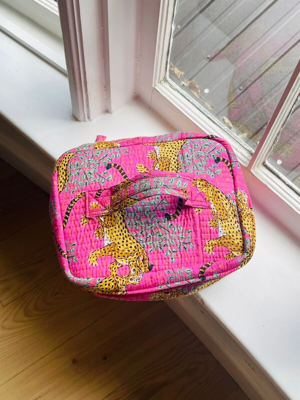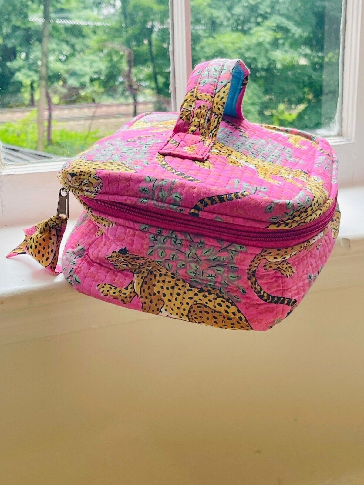 This makeup bag is a must-have for travel lovers! The spacious quilted design keeps all my beauty essentials organized, and the cute animal print with pink accents adds a stylish touch. The interior organizer and included charm make it even more special—perfect for keeping everything in place while on the go. Love the vintage vibe and high-quality feel!
