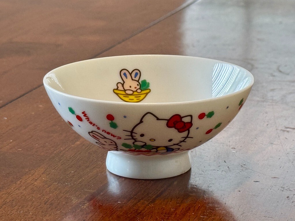 [RARE] 1984 Hello Kitty Bowl - 41 Year Old Sanrio Collectible, Made in Japan Step back in time with this authentic 1984 Hello Kitty rice bowl, a true vintage treasure that has been preserved for over 40 years! This rare collector’s item, officially marked ©1976, 1984 Sanrio Co., Ltd., was made in Japan and features an adorable Hello Kitty design with a bunny, along with the phrase “What’s new?” in classic Sanrio style. Despite its age, the ceramic remains bright white, maintaining its original crispness, and the illustrations are still exceptionally vibrant, with bold colors and sharp details—a testament to the quality of Sanrio's craftsmanship. Why This Bowl Is Special: Over 40 Years Old! A genuine 1984 Hello Kitty collectible—extremely hard to find. Authentic Sanrio Japan – Official markings on the base ensure its authenticity. Rare Design – A charming illustration of Hello Kitty with her bunny friend, plus a unique bunny print inside the bowl. Vintage Appeal – Perfect for collectors of retro Sanrio merchandise and Japanese kawaii memorabilia. Product Details: Brand: Sanrio Material: Ceramic / Porcelain Size: 4.25” diameter x 1.75” height Color: White base with red, green, blue, and black accents Made in Japan An ultra-rare find for serious Hello Kitty collectors! Given its age and scarcity, this vintage bowl is a valuable addition to any Sanrio collection, whether for display or as a nostalgic keepsake. Condition : Well-preserved for its age, with bright colors and clean details. Minor imperfections: A fine hairline crack (barely visible to the eye) and a tiny chip at the base (see photos). Please refer to the provided pictures for a detailed view. We value transparency and are committed to ensuring your complete satisfaction with your purchase. Shipping : Ships to the USA Only. For international shipping inquiries, please contact us. Returns: Please note that returns are not accepted. Check Out Our Other Items! Be sure to explore our eBay store for more high-quality items. Please Note: Colors may vary slightly due to lighting and monitor settings. Feel free to contact us with any questions or for additional photos. Don't miss out on this opportunity to own this [RARE] 1984 Hello Kitty Bowl - 41 Year Old Sanrio Collectible, Made in Japan DISCLAIMER: By purchasing this item, the buyer acknowledges and agrees that the seller is not responsible for any damages, injuries, or malfunctions resulting from the use or installation of this product. The buyer assumes all responsibility for ensuring the compatibility and proper installation of the item. Please carefully review all product details and contact us with any questions prior to purchase. No refunds or returns will be accepted for items that are incorrectly installed or cause any issues due to improper use.