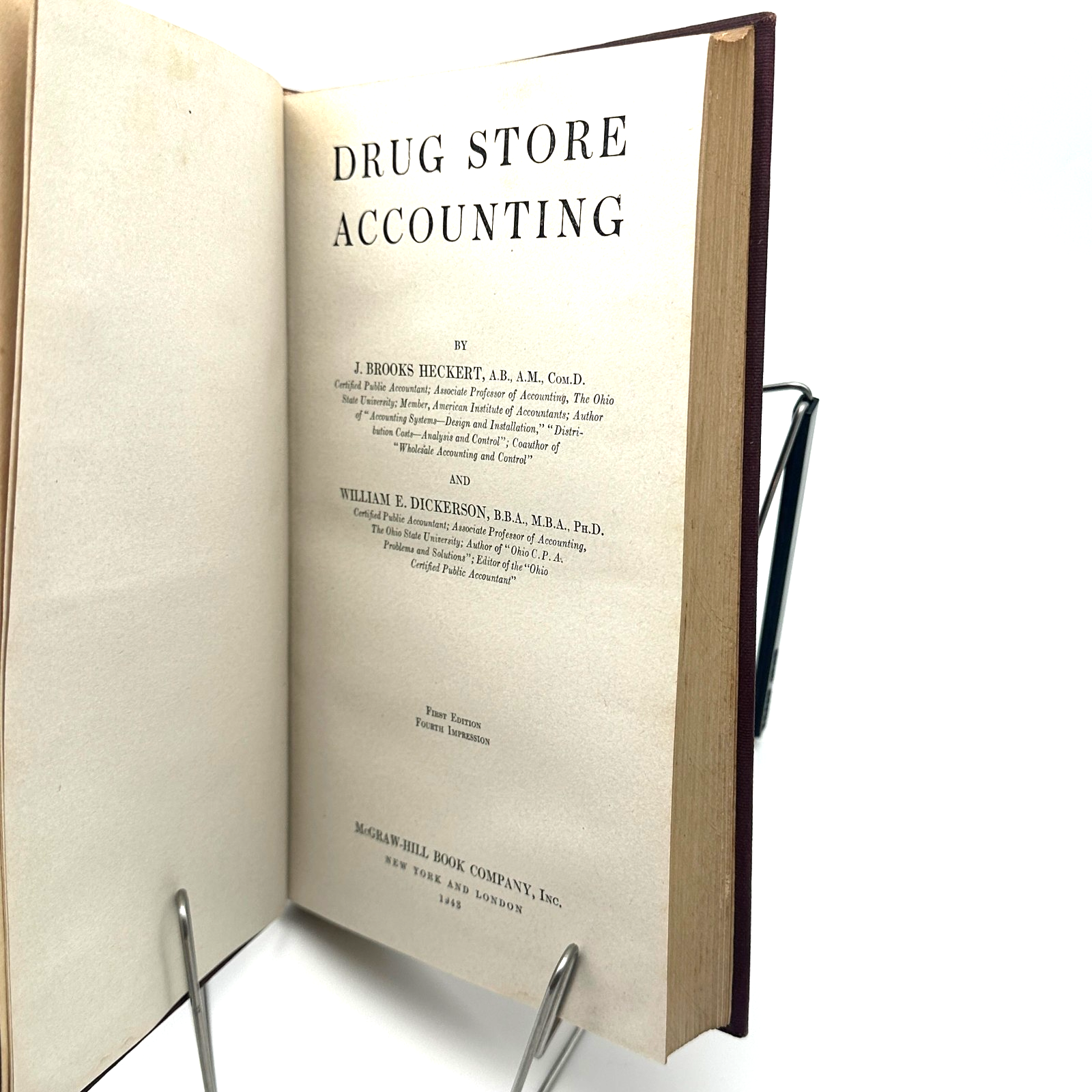 Drug Store Accounting by J. Brooks Heckert and William E. Dickerson is a rare 1943 First Edition, Fourth Impression reference for business and accounting history collectors. Published by McGraw-Hill, this hardcover covers detailed accounting procedures tailored to the drug store industry during the mid-20th century. A fascinating glimpse into retail pharmacy operations during World War II and a must-have for vintage accounting or pharmacy history libraries.