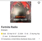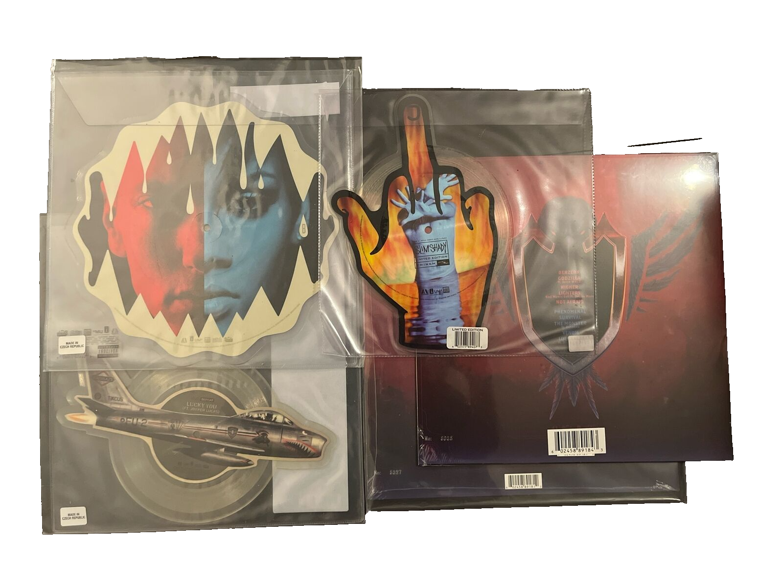RARE EMINEM VINYL SINGLES Bundle of FIVE (5) BRAND NEW, limited edition Eminem vinyl EPs / LPs / 7" die cut singles released from 2019 through 2024 (approximately): (1) The Monster 7" die cut picture disc (2) Kamikaze 5th Anniversary (The Ringer / Lucky You) 7" die cut picture disc (3) Eminem x Fortnite Radio (Red/Blue) (4) Eminem x Fortnite Radio (Gold) (5) Just Don’t Give a F ck / Still Don’t Give a F ck Middle Finger Die Cut 7" JDGAF SDGAF SSLP20 KAMIKAZE THE RINGER THESE ARE NEW, UNUSED, RARE AND SOLD OUT! PLEASE NOTE NUMBERS ON FORTNITE ALBUMS (EACH IS NUMBERED EDITION -- ONE RED / BLUE SWIRL, THE OTHER GOLD) MAY DIFFER FROM PICTURES. BASICS: Get this once-in-a-lifetime bundle, never opened bundle of three extremely rare Eminem collectors' items while you still can. PLEASE NOTE: Specific details re: size/RPM may differ from album to album. Please check pictures or ask if specific details are important to you. CONDITION: New. In original packaging. Mint or near mint condition. The Ringer/Kamikaze, The Monster, and the SSLP JDGAF singles came in plastic slipcovers but are not technically sealed; Fortnite (red/blue and gold) are sealed and numbered. DETAILED DESCRIPTIONS: (1) THE MONSTER DIE CUT 7" Limited edition Shady Rated R Capsule. The Monster Die Cut 7" picture disc. Exclusive to the Eminem store. Side A: The Monster Side B: Bad Guy (2) KAMIKAZE 5TH ANNIVERSARY DIE CUT 7" Limited edition collector’s item for the 5th anniversary of Kamikaze - Airplane Die Cut 7" picture disc. Exclusive to the Eminem store. Side DEATH - The Ringer Side DEFEAT - Lucky You (3) EMINEM X FORTNITE (RED/BLUE SWIRL) Eminem x Fortnite Radio Vinyl (clean). Exclusive to the Eminem store. Includes all of Eminem's hits heard in game on Fortnite Radio. Vinyl is numbered. Tracklist: 1. Berzerk 2. Godzilla 3. Higher 4. Lighters 5. Not Afraid 6. Phenomenal 7. Survival 8. The Monster 9. Venom 10. Lucky You (4) EMINEM X FORTNITE (SPOTIFY GOLD) Same as Red/Blue, but Spotify first gold limited edition. Numbered. Sealed. Mint or near mint condition. (5) Just Don’t Give a Fck / Still Don’t Give a Fck JDGAF / STGAF SSLP20 Extremely rare. Two key cuts from the Slim Shady LP in one commutative vinyl 7” die cut middle finger. Believe it was created for the Slim Shady LP 20th anniversary in 2019 (SSLP20). Please contact me with any questions! Buy it before THE DEATH OF SLIM SHADY (COUP DE GRACE) — EMINEM’S (FINAL?) ALBUM! ALL DETAILS ARE TO THE BEST OF MY KNOWLEDGE. ITEMS IN PHOTOGRAPHS MAY BE DIFFERENTLY NUMBERED, BUT QUALITY OF ITEMS WILL BE NEARLY IDENTICAL. Lead single "Houdini" out now.
