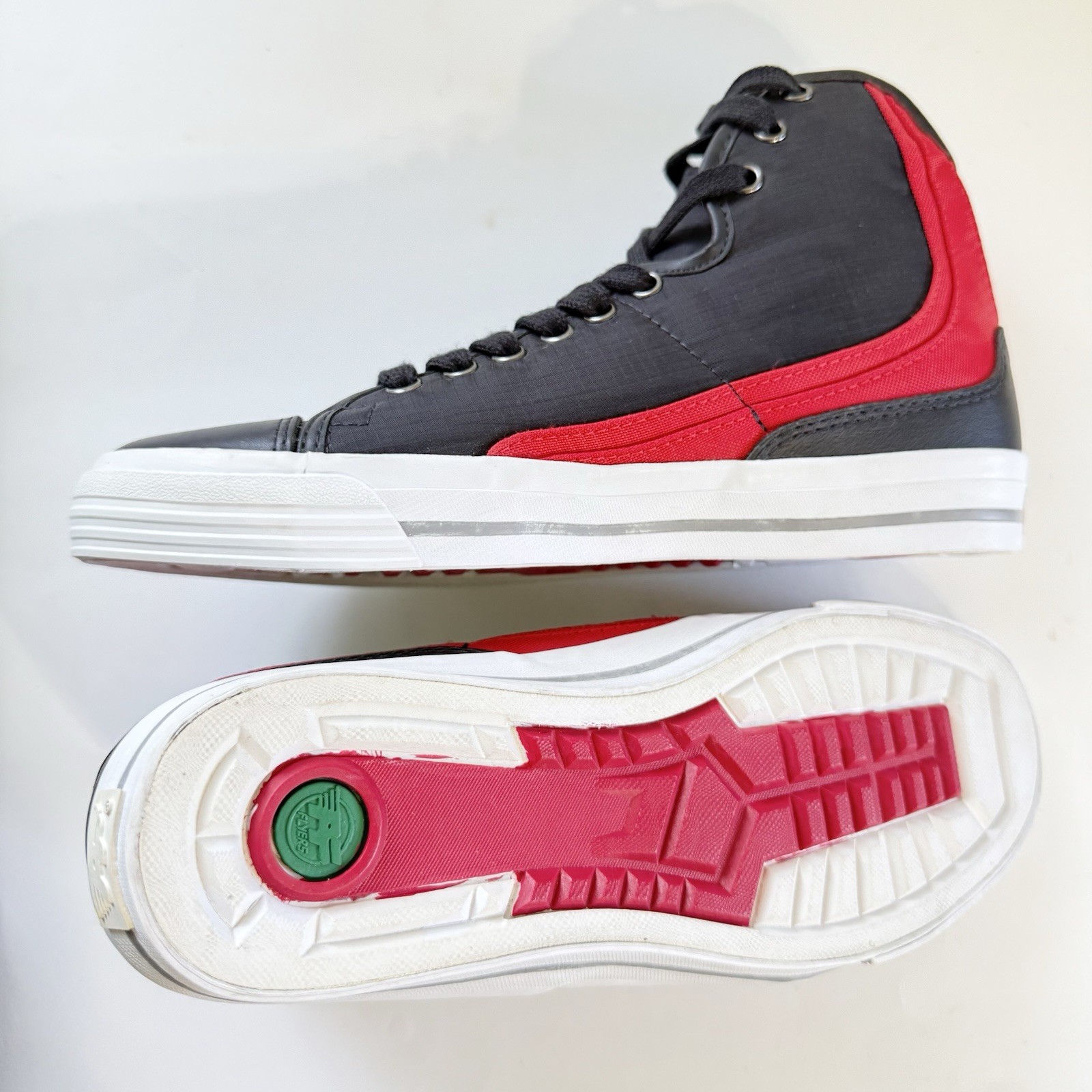 Brand: PF Flyers Style: High-Top Casual Sneaker Color: Black with Red nylon overlay & black leather trim Material: Nylon/Canvas upper, rubber sole Size: 8.5 Model: “Rambler” retro series. Released Spring 2010 and is part of the PF Flyers archival or heritage-inspired line—not as commonly found. Vintage-inspired PF Flyers silhouette Rare colorway Nylon construction with contrast red side panel PF circular ankle patch Rubber toecap and outsole Grey midsole stripe Very lightweight and stylish Great condition!