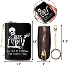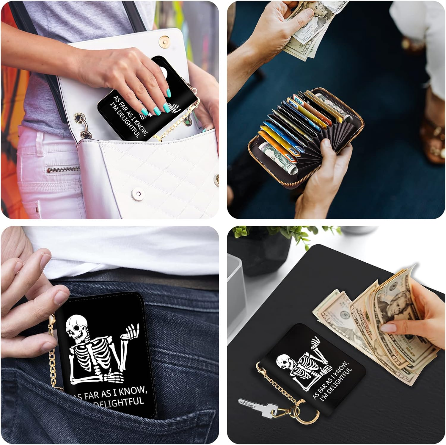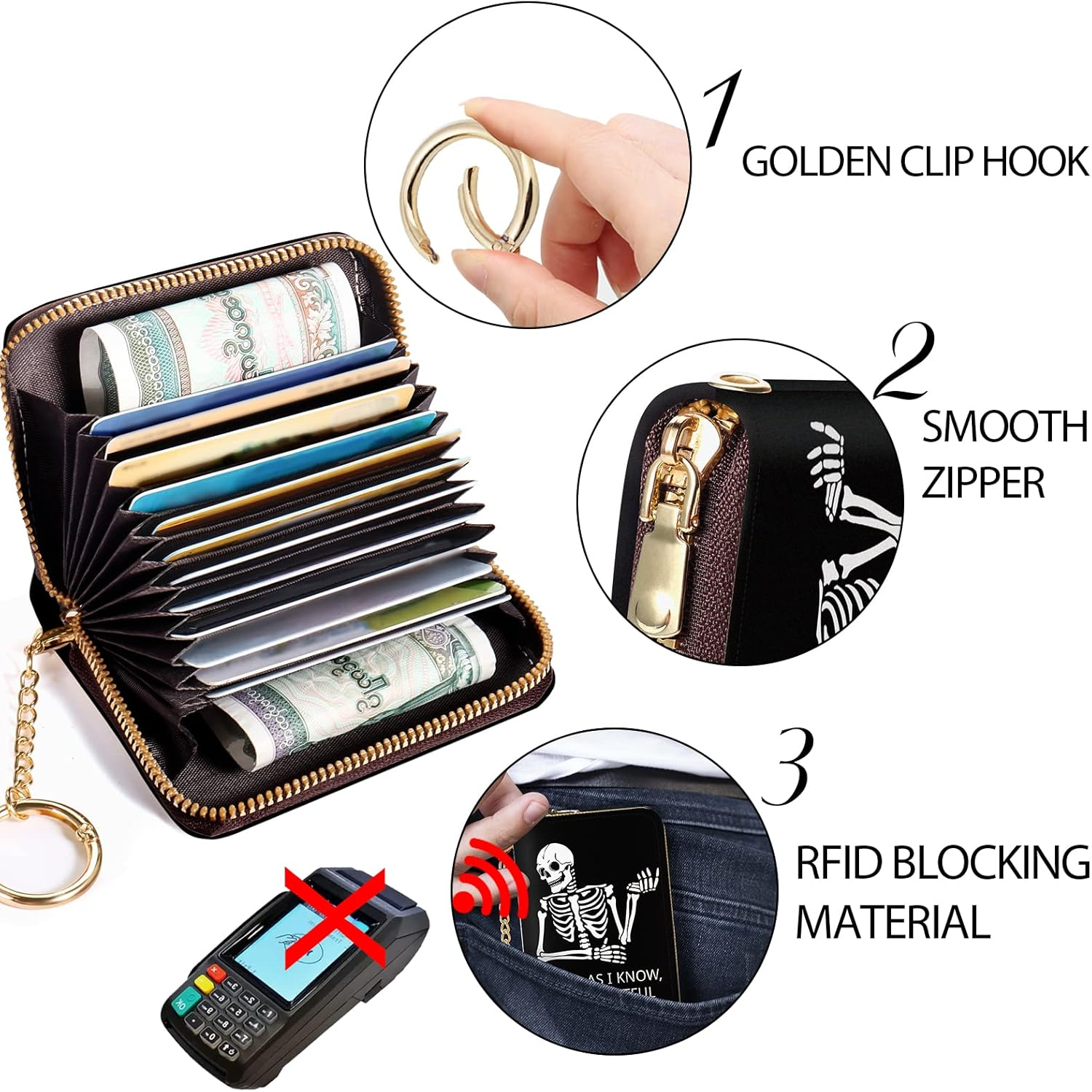 Product Description The video showcases the product in use. The video guides you through product setup. The video compares multiple products. The video shows the product being unpacked. hero-video Merchant Video 12 card slots, 2 cash slot, 1 key chain, both high-capacity and small, really practical in daily life or traveling Easy to Carry, as purse is lightweight and small enough 1 Organzier Case 2 RFID Blocking 3 Small Wallet Paired with wrist strap, collect the keys, cash, and cards needed for going out in wristlet wallet A amazing gift for a variety of occasions, for loved one. Is card case capacious enough to hold my cards? With a large capacity of 12 card slots and two extra wide slots for cash or coins, our card case is capacious enough to hold your credit cards for daily use. Does small card holder protect credit cards from RFID scanning? Sure, RFID blocking technology ensures the security of your personal information, providing a reliable experience for your cards. Is mini wallet compact enough to fit into pocket? Yes, the size of the wallet is only 4.3'' x 3.1'' x 1'', you can carry it in your pocket to go out. Is zipper sturdy and glides smoothly? Yes, it use smooth sturdy zippers, ensures long-term use for zipper card wallet. Small Wallet for Women Add to Cart Add to Cart Add to Cart Add to Cart Add to Cart Add to Cart Customer Reviews 4.6 out of 5 stars 1,971 4.6 out of 5 stars 1,971 4.6 out of 5 stars 1,971 4.6 out of 5 stars 1,971 4.6 out of 5 stars 1,971 4.5 out of 5 stars 2,631 4.5 out of 5 stars 2,631 Price $8.99 $ 8 . 99 $7.99 $ 7 . 99 $8.99 $ 8 . 99 $8.99 $ 8 . 99 $9.99 $ 9 . 99 $8.99 $ 8 . 99 $6.99 $ 6 . 99 Style Black Moon Elephant Skeleton Cat Mushroom Sea Turtle Color Black Black Blue Black Grey Black Multicolor Feature 1 RFID Blocking RFID Blocking RFID Blocking RFID Blocking RFID Blocking RFID Blocking RFID Blocking Feature 2 Keychain Keychain Keychain Keychain Keychain Keychain Keychain Feature 3 Accordion Accordion Accordion Accordion Accordion Slim Slim