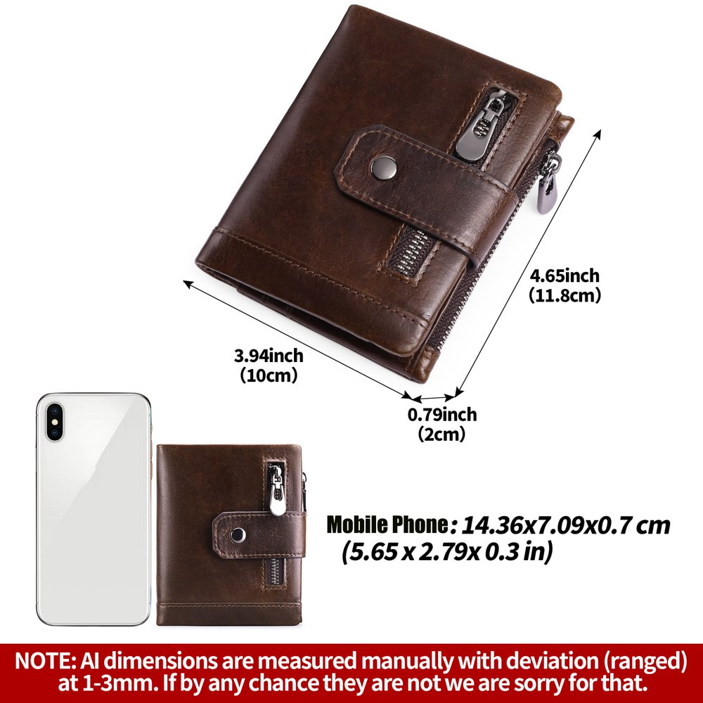 Product Details Product Dimensions(L x W x H):4.65x3.94x0.79 Inches Material:100% Genuine Leather Style:Casual & Business men's wallets,rfid wallet men,minimalist wallet for men,Leather Wallets,RFID Blocking Type:card holder for men / Leather Wallets for men / Card Wallets for men / credit card wallets for men / rfid wallet / How much capacity can you enjoy? 11 secure credit card slots to keep your card securely in place 2 practical and clear photo/document windows, the windows are mesh, not plastic, do not worry about the difficulty of getting in and out. 1 Bill compartment to keep your wallet organized 2 Coin compartments are used to store cash or receipts and coins, making your work and travel more convenient. Sendefn wallets for men:Our man's wallet will be packaged in beautiful gift boxes to give you more shopping experience and are the first choice gifts for family and friends Excellent quality. We manufacture our men's purses from genuine leather of the highest quality, which gives them a unique leather feel and smell. Sendefn wallets are well finished, such as clean and fine seams, perfectly matching card slots and more. High-quality leather ensures the longevity of our purses and fine workmanship ensures the aesthetics of our purses. Dimensions: The wallet is about 11.8 cm x 10 cm x 2 cm, weight: 0.1 kg, can be pushed into the front and back pockets, enough space for your valuables when you go out. Large Capacity: A reasonable and compact design allows you to easily transport and keep all the important cards in order. 11 Card slots for credit cards, meets your daily needs. 1 large compartment for all your ,2 ID window for driver's license or work/school ID and passport so you can quickly access them. 2 Zippered pockets for coins, keys or other small items. Makes your work and travel more convenient. RFID Blocking: This slim men's wallet is equipped with advanced RFID Secure technology, it is safer and protected from electronic pickpocketing, blocks the protection from RFID scanners and readers. Protects the valuable private information on RFID chips from unauthorized scans. The best gift idea for men can be used for work, travel, shopping, dates, holidays. This small leather purse is suitable for men, husbands, fathers, uncles, brothers, friends, colleagues, boss. It is the best choice for birthdays, anniversaries, Father's Day, Valentine's Day, Thanksgiving, Christmas and New Year. They are a great gift idea for travelers in your life