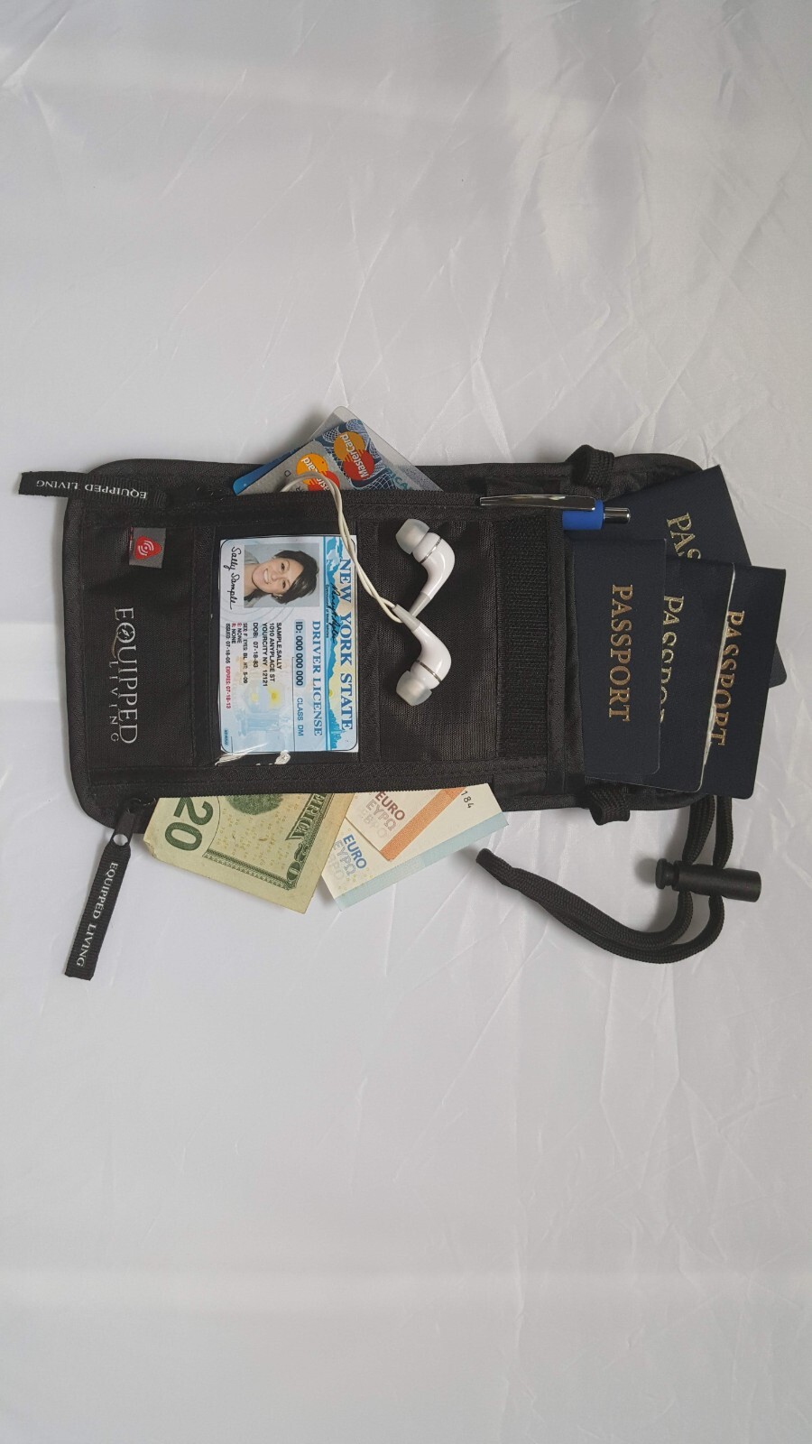 Passport holder/wallet some features are: - RDIF Protection to keep your credit card information private - This holder has a strap that goes around your neck for safety for pick pockets -Adjustable strap for comfort -Can be worn under clothing -Allows you the convenience to carry passport, documents, credit cards, drivers license and money all in one pouch/holder -Gives you the freedom to be hands free -Shipped from USA...