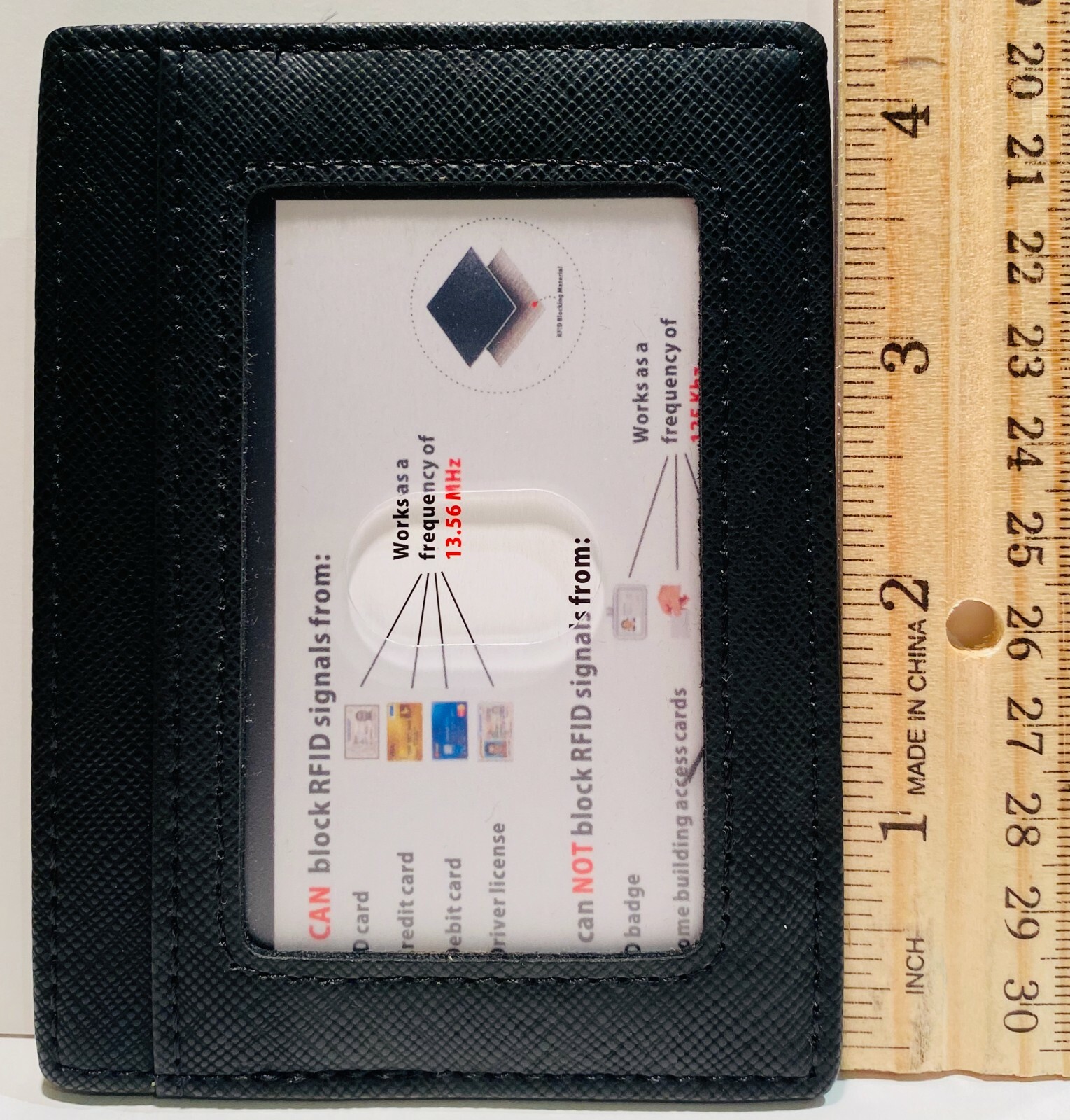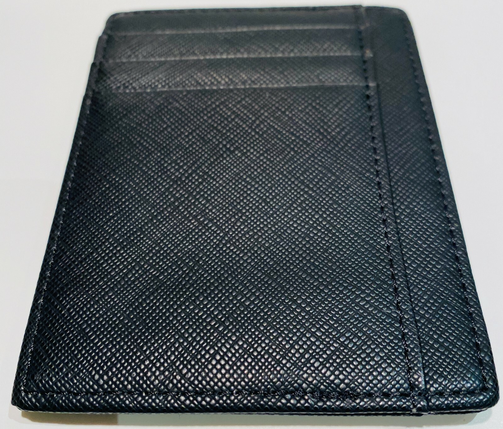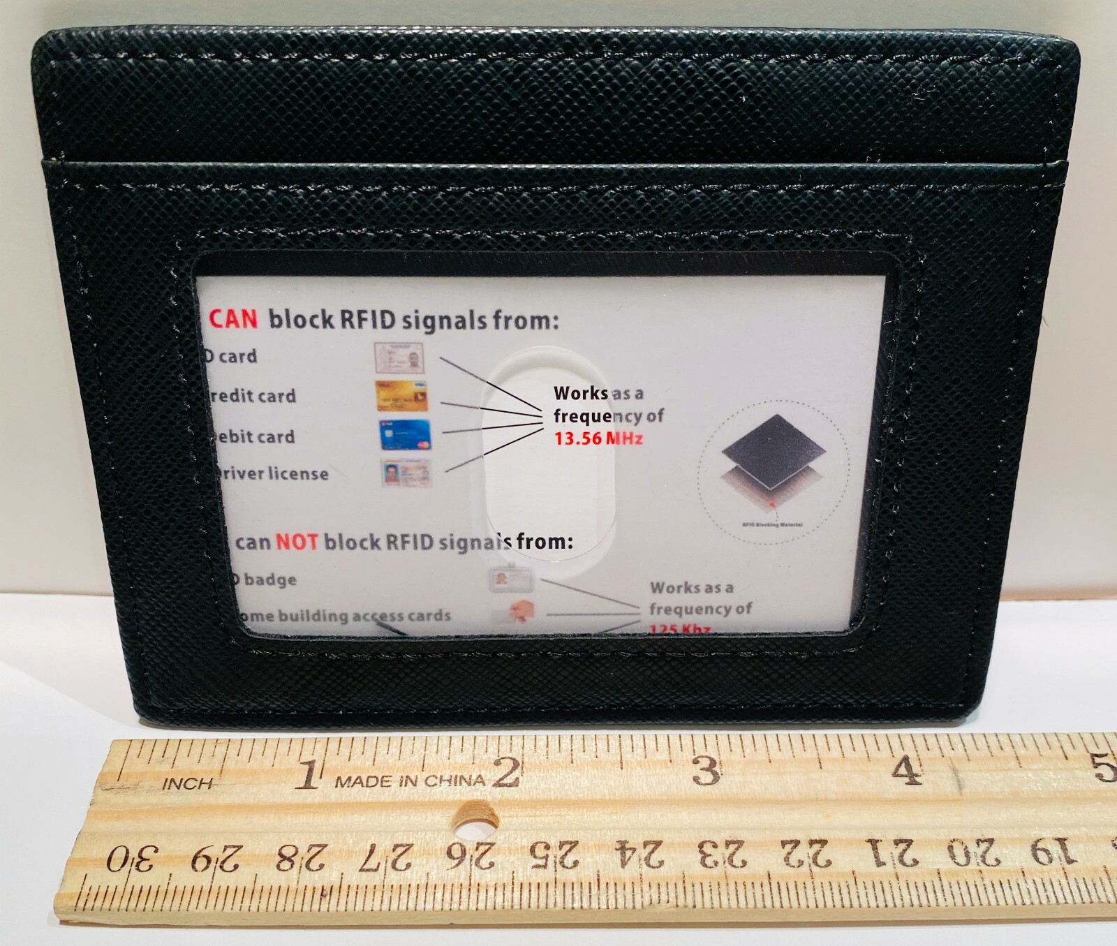 UP FOR SALE!!!!!!! Credit Card Holder with ID Window - R.F.I.D. Blocking Slim Wallet in Black (New) Wallet is New and appears to be Leather but might possibly be Faux Leather or PU Leather. Pls see detailed photos for wallet size. Feel free to message me if you have any questions.