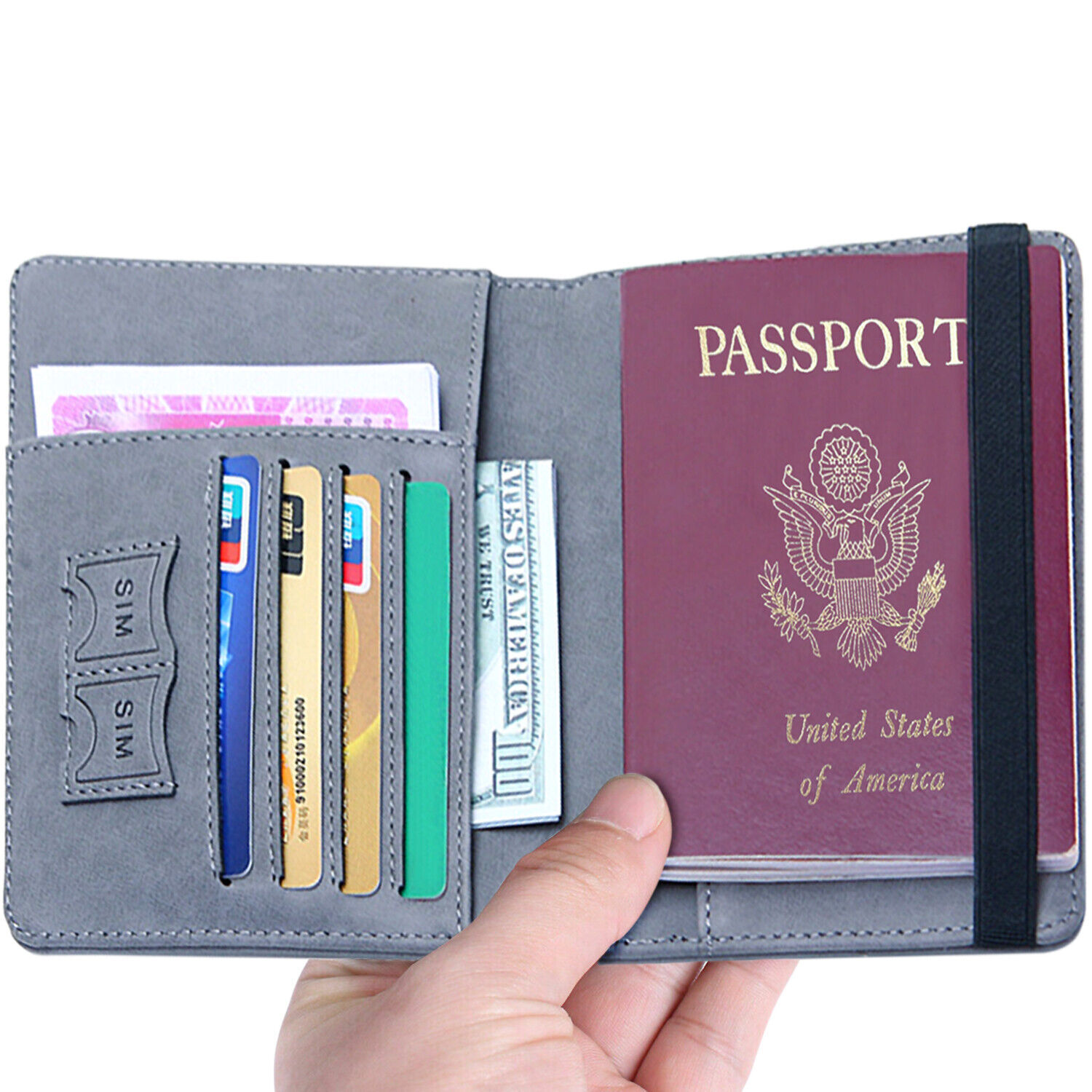 Unisex RFID Blocking Leather Passport Holder Wallet Cover Case Travel ID Holder Features: * Made of premium leather. Provides a comfortable feeling and protection from dust and abrasions. * Built in RFID Blocking helps prevent personal account information disclosure.(Anti-Scan with Anti-magnetic material ,to prevents unauthorized access to personal information.) * Lightweight and perfect design: Carries cash, credit cards and your passport without being oversized and bulky. sufficiently. Allows convenient access to information during boarding and transit. * Lightweight slim design, adding no unnecessary bulk or weight. RFID Blocking Material Equipped with RFID blocking material to help prevent identity theft from RFID scanners. Keep your credit cards and other RFID-chipped cards secure with GreatShield’s RFID case/wallet while travelling. 100% Brand New and High Quality! Material: PU Leather Internal structure 4 card slots 1 coin p ocket 1 passport holder 1 bill compartment 2 SIM card 上slots Size:14.8cm*11cm*1cm when closed Color: Green, Black, Coffee, Red,Blue,Pink, Orange,Gray Package include: 1pcs RFID Blocking Passport Holder