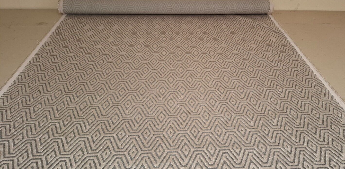 ROLL END 5 METRES OF SILVER GREY METALLIC TONE CUT VELVET UPHOLSTERY FARIC, A GOOD MEDIUM WEIGHT FABRIC, IN A STYLISH GEOMETRIC DESIGN. FABRIC WIDTH 55 INCHES FABRIC COMPOSITION IS POLYESTER, VISCOSE AND COTTON. PLEASE NOTE ALL OF OUR FABRICS ARE FIRE RETARDANT TO BRITISH STANDARD UNLESS STATED OTHERWISE. WELCOME TO MY NEW SITE, HAVING A PASSION FOR UPHOLSTERY FABRICS THAT ARE OF THE BEST QUALITY AND DESIGN & ALL ARE GRADE A QUALITY AND NOT SECONDS. ALL ARE BEING OFFERED AT HUGELY DISCOUNTED PRICES. PLEASE BUY WITH CONFIDENCE, IF THE FABRIC OR ITEM IS NOT AS DESCRIBED, A FULL REFUND WILL BE ISSUED ON RETURN. PLEASE NOTE IN MOST FABRIC LISTINGS I CANNOT SEND OUT FABRIC SAMPLES AS THE FABRICS ARE EXACT MEASUREMENTS. PLEASE CHECK OUT REGENCYHOUSE2013 ON EBAY FOR REFERENCE TO QUALITY. KIND REGARDS FROM AMANDA
