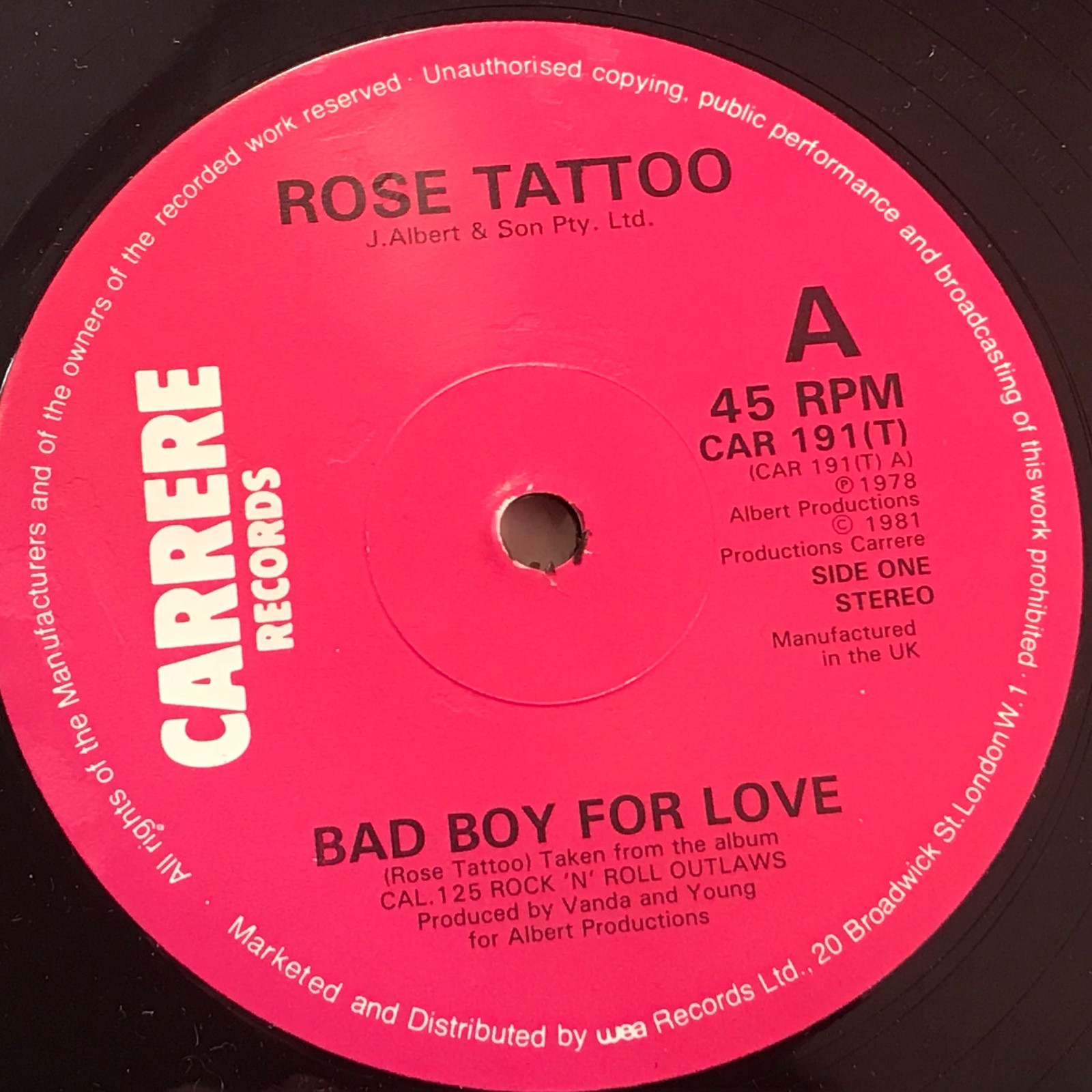 ROSE TATTOO Bad Boy For Love 1981 UK 12" vinyl single, b/w Tramp, CAR191T . Record Condition : Excellent Cover : Minor shelfwear (see photo) Please check out our other items !