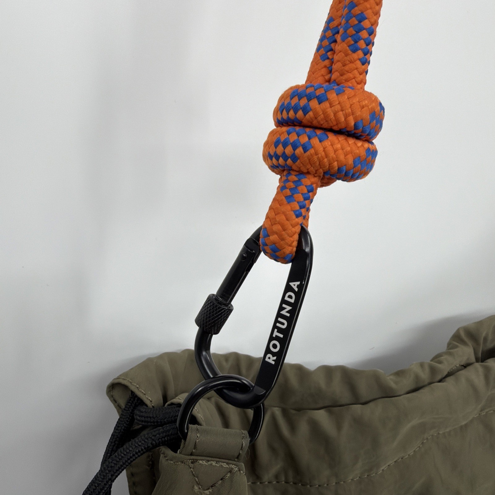 ROTUNDA Handbag Sant Hobo Bag Olive Rope Stitched Bag Green Orange w/ Carabiners Ships same or next business day! May include slight scuffs on metal rings and carabiners and minor wear and tear on bag.