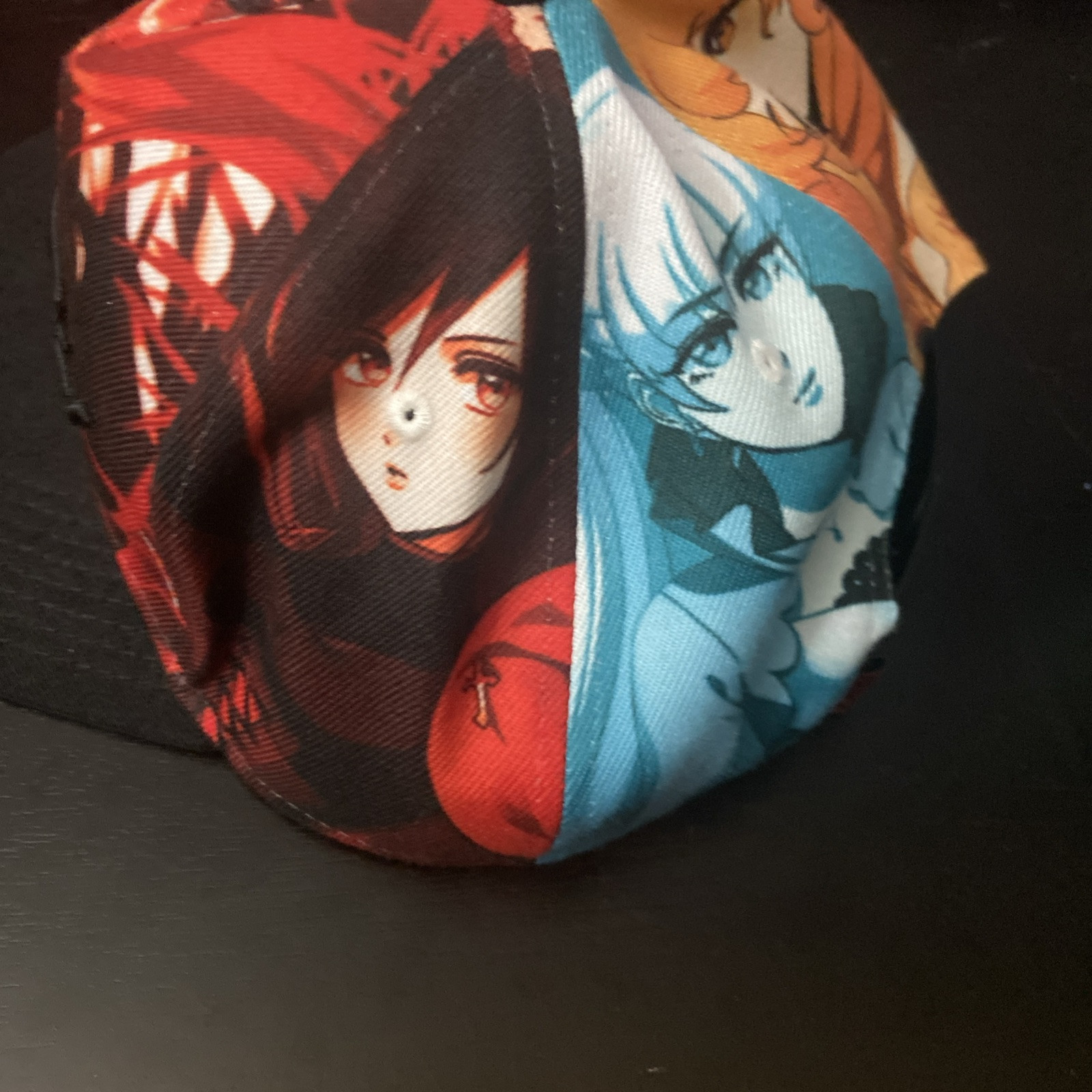 RWBY Hat Ruby Rose Weiss Blake Yang Sublimation 2016 Rooster Teeth Team Adult Ex. Condition is Pre-owned. Shipped with USPS Ground Advantage.