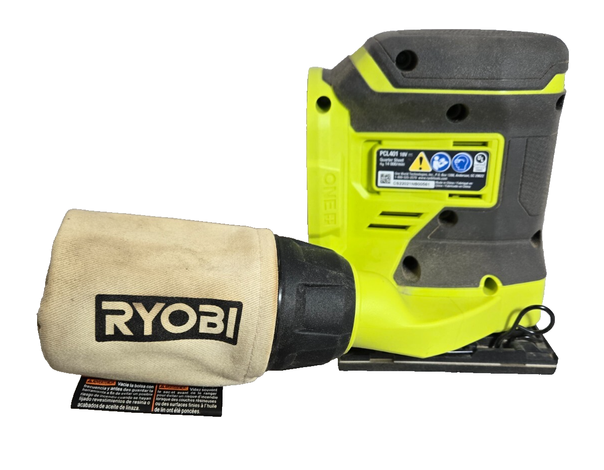 RYOBI ONE+ 18V 1/4" Sheet Sander - Model: PCL401B - Tool ONLY w/Dust Bag In good working condition Includes 2 sheets of sandpaper, operator's manual & original box