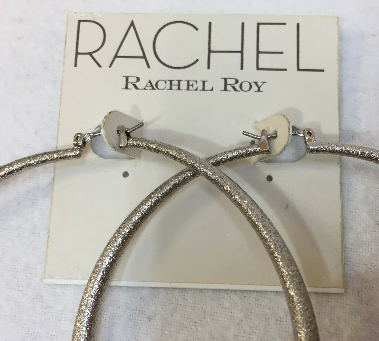 Rachel Roy dangling hoop earrings made out of a silver tone metal with a textured design. Measures Approximately 3 1/4" Long - 1/4" Wide Check out my pictures and message me any questions! SHIPPING CHARGES ARE QUOTED FOR LOWER 48 STATES USA ONLY. For shipping to Alaska, Hawaii and Puerto Rico, please message me requesting shipping cost. Thanks for looking and have a Great Day! # 56944 JP JL 1345