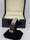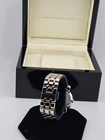 Rado Women’s DiaMaster Two-Tone Silver Dial Watch – R14089103 ( $1600 MSRP ) With Gift Box! This watch is a Shelf Pull from one of the Major Department Stores. Watch has scratches on the watch case/band. The Rado Women’s DiaMaster Silver Dial Ladies Watch – R14089103 epitomizes luxurious elegance and refined craftsmanship. This exquisite timepiece features a stainless steel case paired with a two-tone bracelet, combining silver-tone and rose gold PVD stainless steel for a sophisticated and timeless look. The fixed stainless steel bezel surrounds a silver dial, beautifully complemented by rose gold-tone hands and index hour markers, ensuring easy readability and a touch of glamour. At the heart of this watch is the reliable ETA caliber E63.111 Swiss quartz movement, renowned for its precision and durability. The dial includes a date display at the 6 o'clock position, adding functionality to its elegant design. Protected by a scratch-resistant sapphire crystal, the watch maintains its pristine condition over time, while the pull/push crown and solid case back ensure a secure and robust structure. Measuring 33 mm in case diameter and 8 mm in thickness, this round case watch sits comfortably on the wrist. The 16 mm wide bracelet, equipped with a fold-over clasp with a push-button release, offers both style and security. Water-resistant up to 50 meters (165 feet), the Rado DiaMaster is versatile enough for daily wear while retaining a dressy, refined appeal. With an MSRP of $1600, this watch represents an investment in quality and timeless style, perfect for the discerning woman. Features Stainless steel case with a two-tone (silver-tone and rose gold PVD) stainless steel bracelet. Fixed stainless steel bezel. Silver dial with rose gold-tone hands and index hour markers. Dial Type: Analog. Date display at the 6 o'clock position. ETA caliber E63.111 Swiss quartz movement. Scratch resistant sapphire crystal. Pull / push crown. Solid case back. Round case shape. Case size: 33 mm. Case thickness: 8 mm. Band width: 16 mm. Fold over clasp with a push button release. Water resistant at 50 meters / 165 feet. Functions: date, hour, minute, second. Fast and Free Shipping You're already purchasing the item. Why pay additional for shipping, especially slow shipping? We get your order shipped out within 1-business day and delivered to your doorstep as quickly as possible. Competitive Pricing With our dynamic pricing model, our prices are always competitive. Our prices are some of the lowest that you will find on the internet. Rest assured that you're getting a good deal when purchasing with us. 30-day Money Back Guarantee We are committed to making sure that you leave this transaction satisfied. If you're unhappy with the product for any reason, you may return it back for your money-back or a replacement within 30 days. No questions asked!